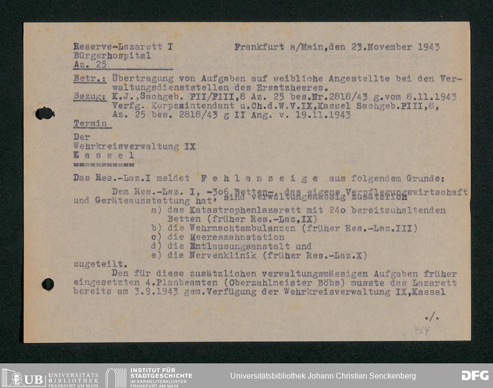 V48 Dr. Senckenbergische Stiftung, 703 - Reservelazarett I