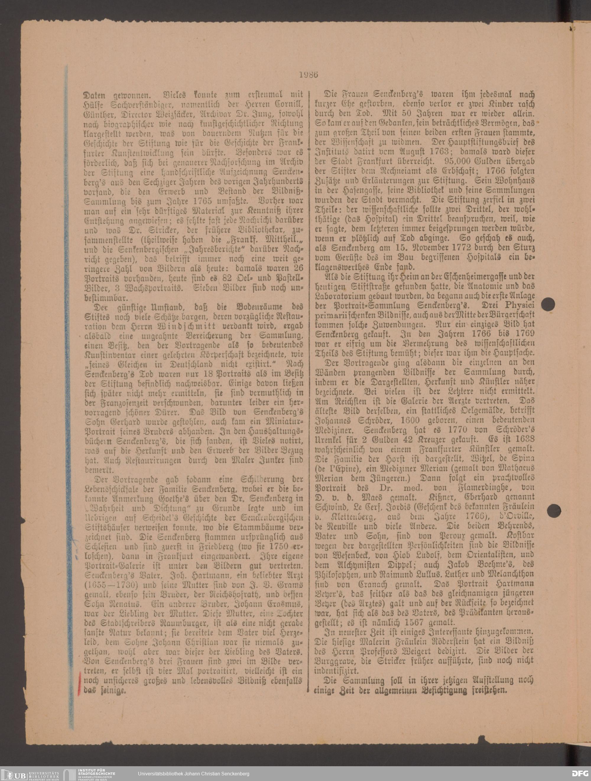 Nachlass Johann Christian Senckenberg