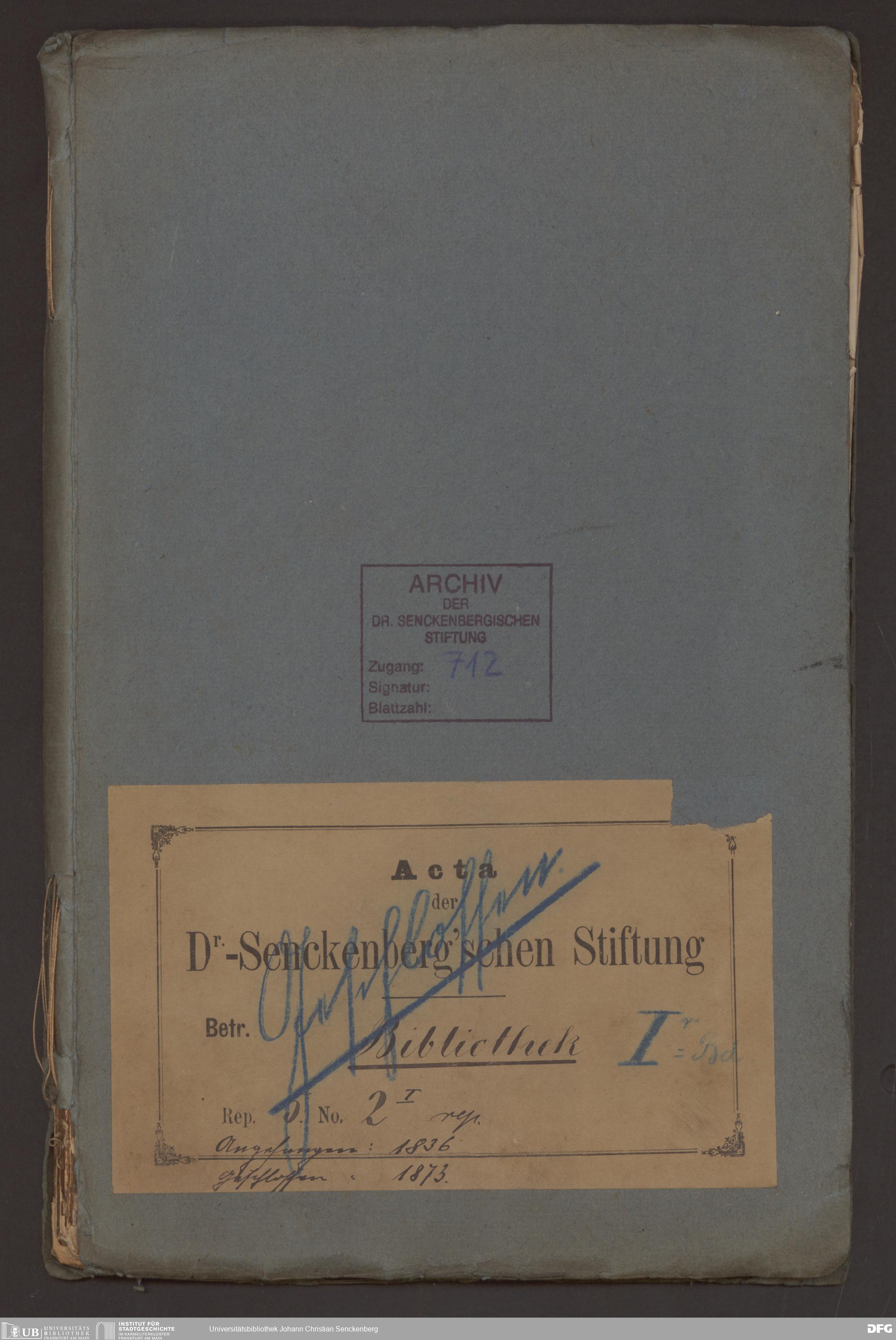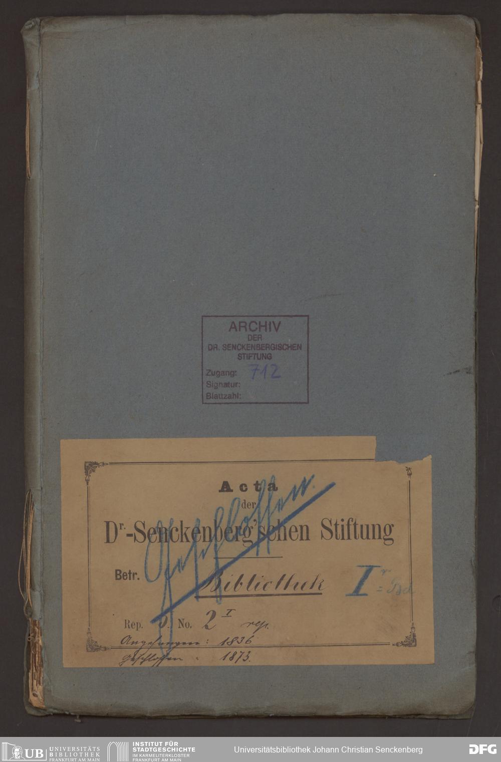 V48 Dr. Senckenbergische Stiftung, 712 - Organisation des Bibliothekswesens
