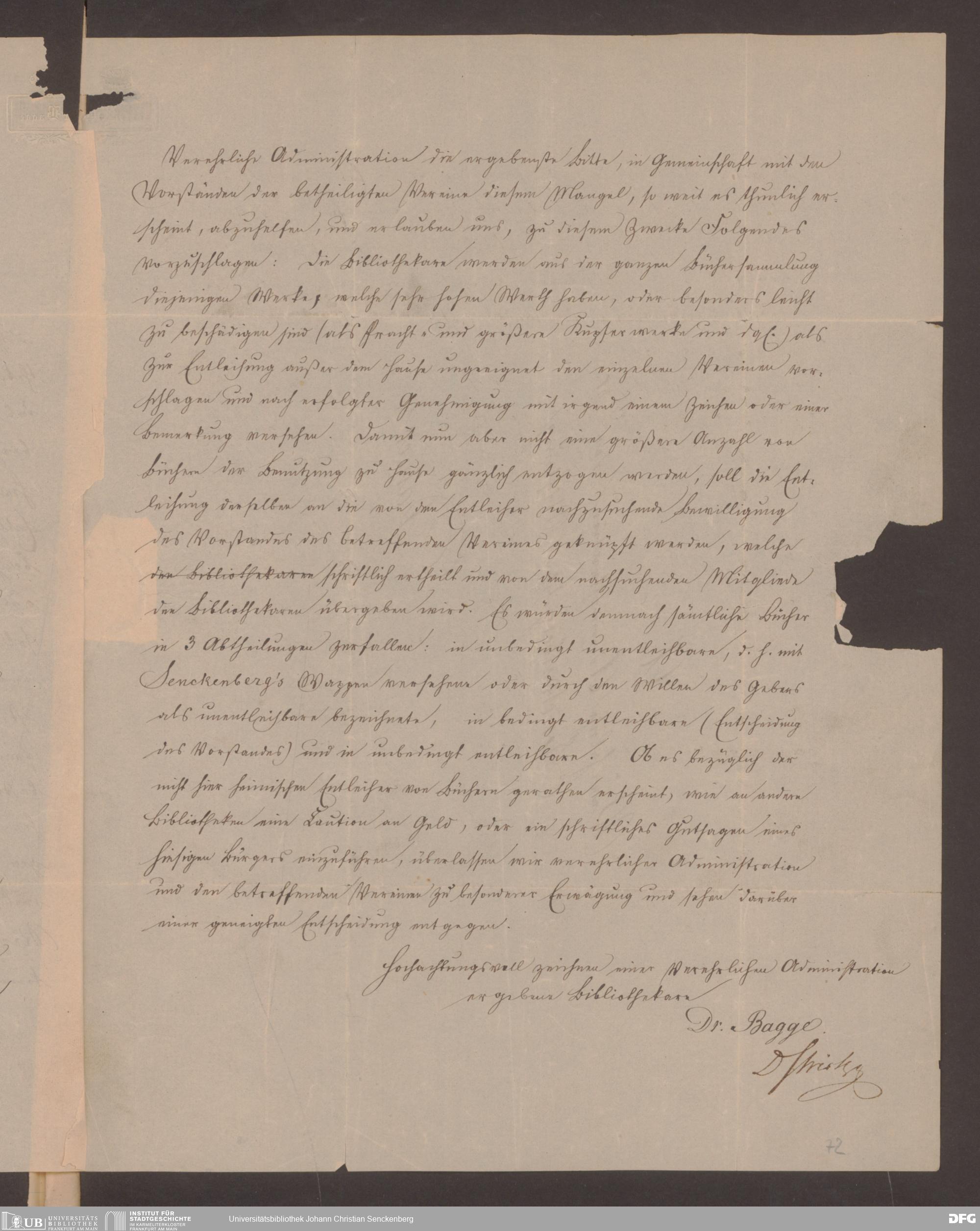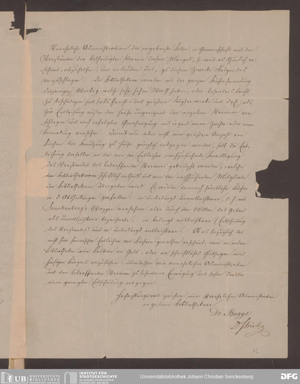 V48 Dr. Senckenbergische Stiftung, 712 - Organisation des Bibliothekswesens