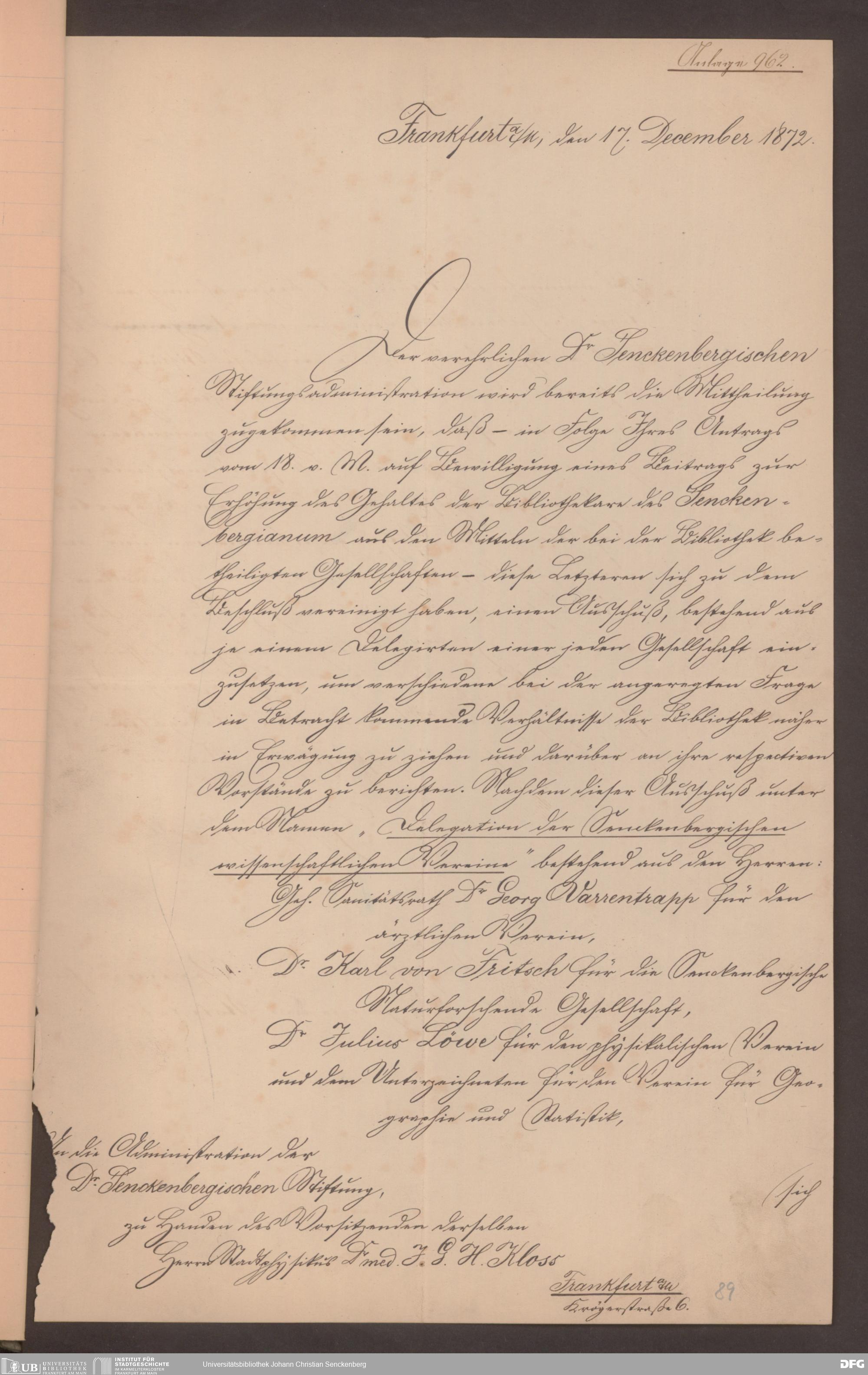 V48 Dr. Senckenbergische Stiftung, 712 - Organisation des Bibliothekswesens