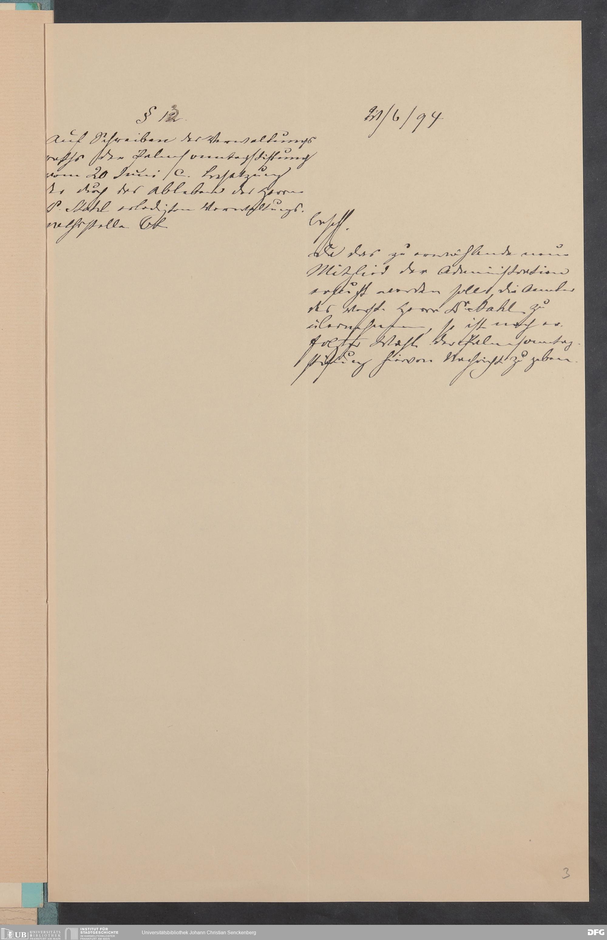 V48 Dr. Senckenbergische Stiftung, 743 - Ernennung Carl Stahls zum Deputierten der Senckenbergischen Stiftung bei der Palmsonntag-Stiftung