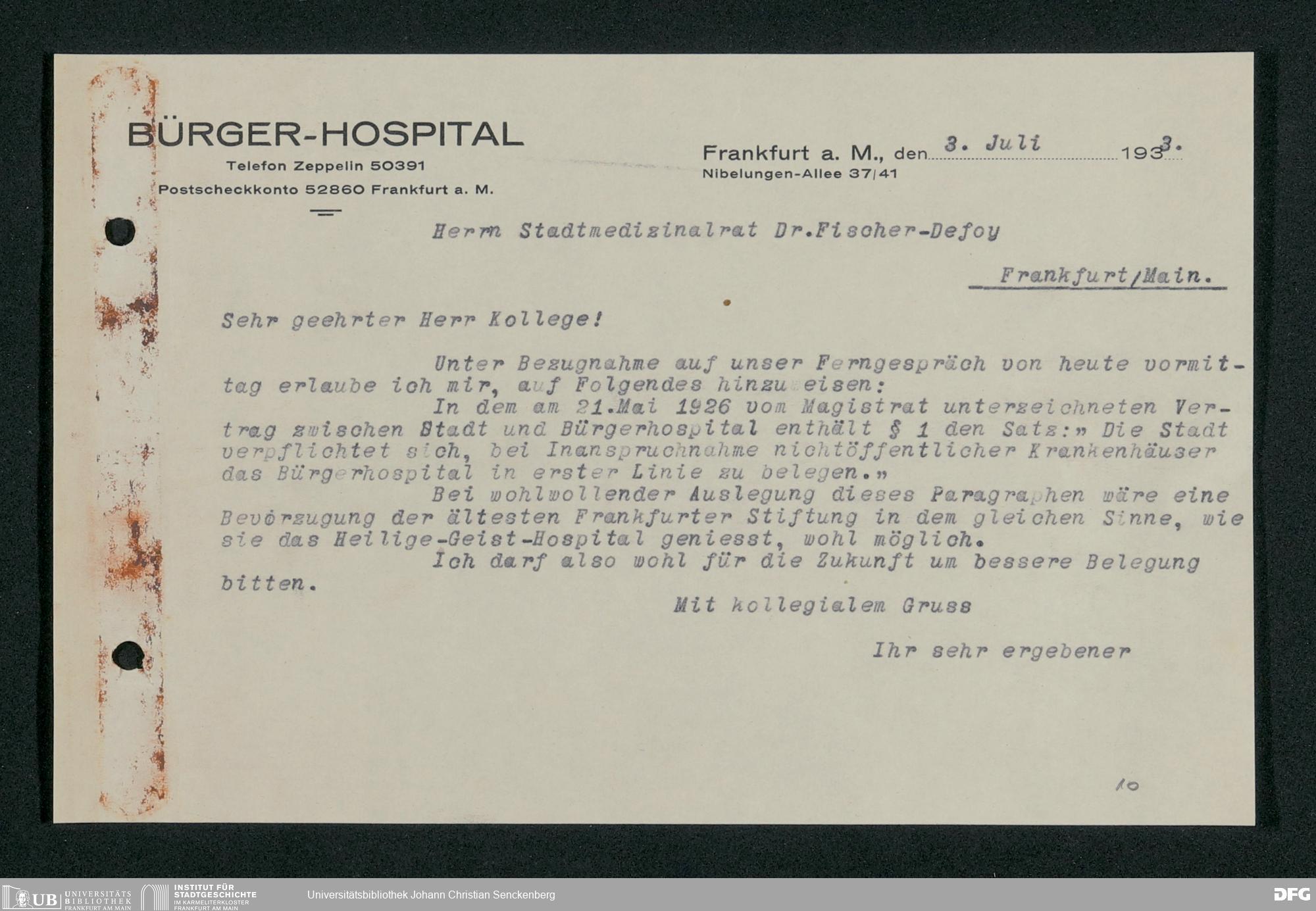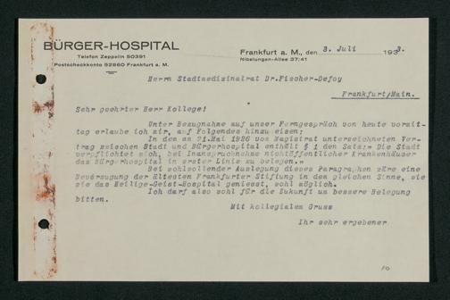 V48 Dr. Senckenbergische Stiftung, 748 - Korrespondenz zwischen der Administration und dem Rechneiamt über Zinsen und Tilgung eines von der Stadt dem Bürgerhospital gewährten Darlehens