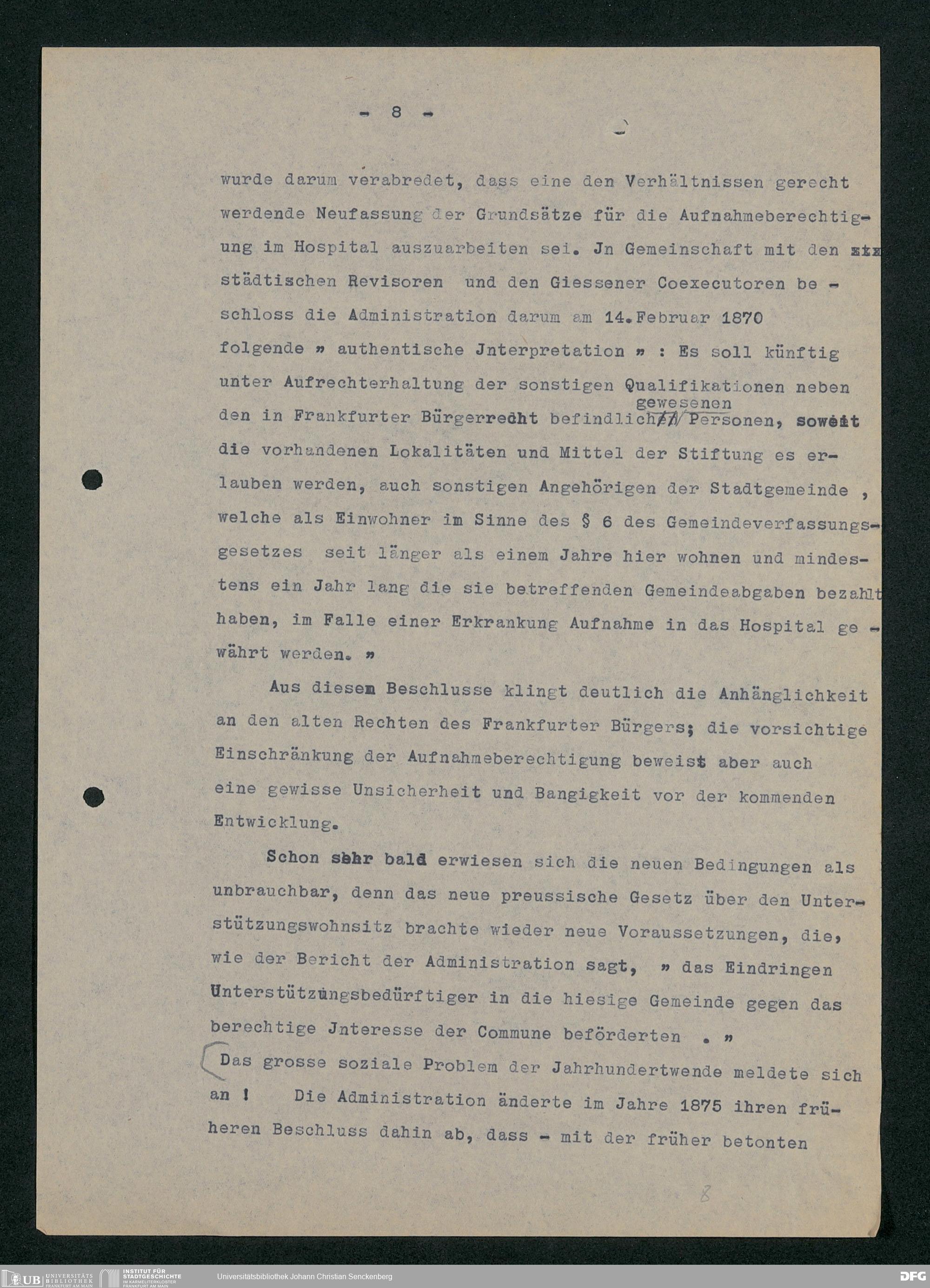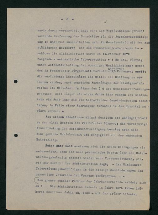 V48 Dr. Senckenbergische Stiftung, 752 - ... Vorarbeiten zu August de Barys "Geschichte der Dr. Senckenbergischen Stiftung 1763-1938. Ein Zeugnis des Frankfurter Bürgersinns in 175 Jahren", Bd. 7