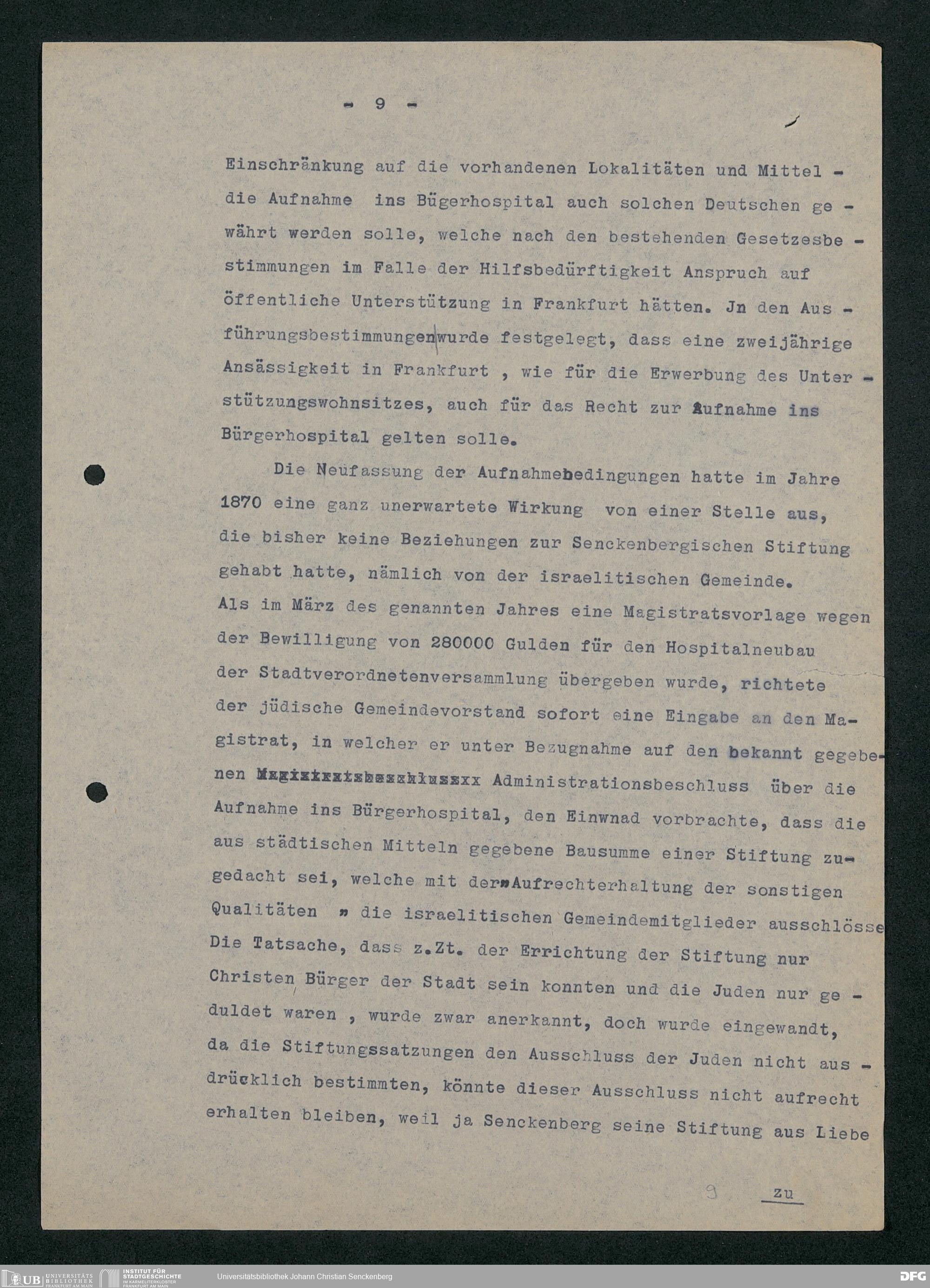 V48 Dr. Senckenbergische Stiftung, 752 - ... Vorarbeiten zu August de Barys "Geschichte der Dr. Senckenbergischen Stiftung 1763-1938. Ein Zeugnis des Frankfurter Bürgersinns in 175 Jahren", Bd. 7