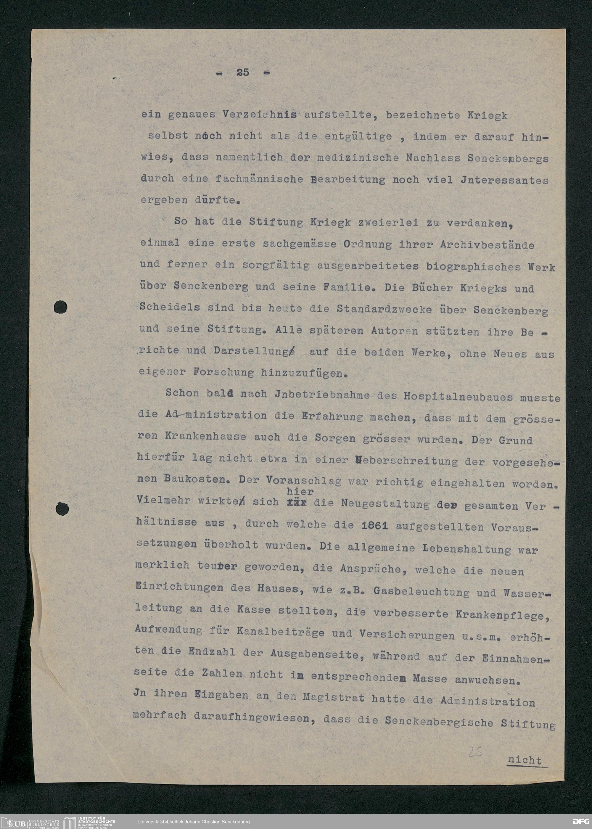 V48 Dr. Senckenbergische Stiftung, 752 - ... Vorarbeiten zu August de Barys "Geschichte der Dr. Senckenbergischen Stiftung 1763-1938. Ein Zeugnis des Frankfurter Bürgersinns in 175 Jahren", Bd. 7