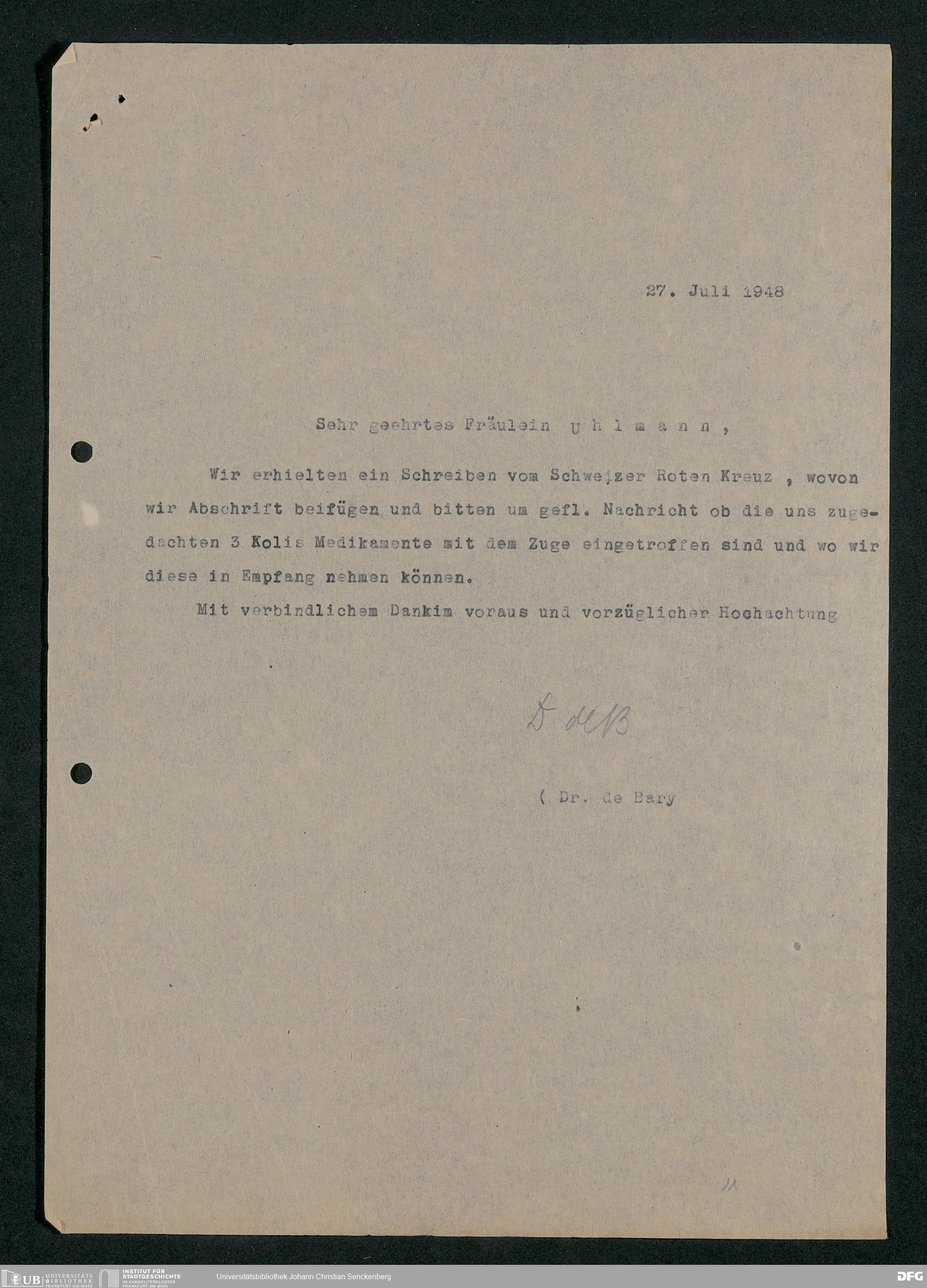 V48 Dr. Senckenbergische Stiftung, 778 - Handakten August de Barys