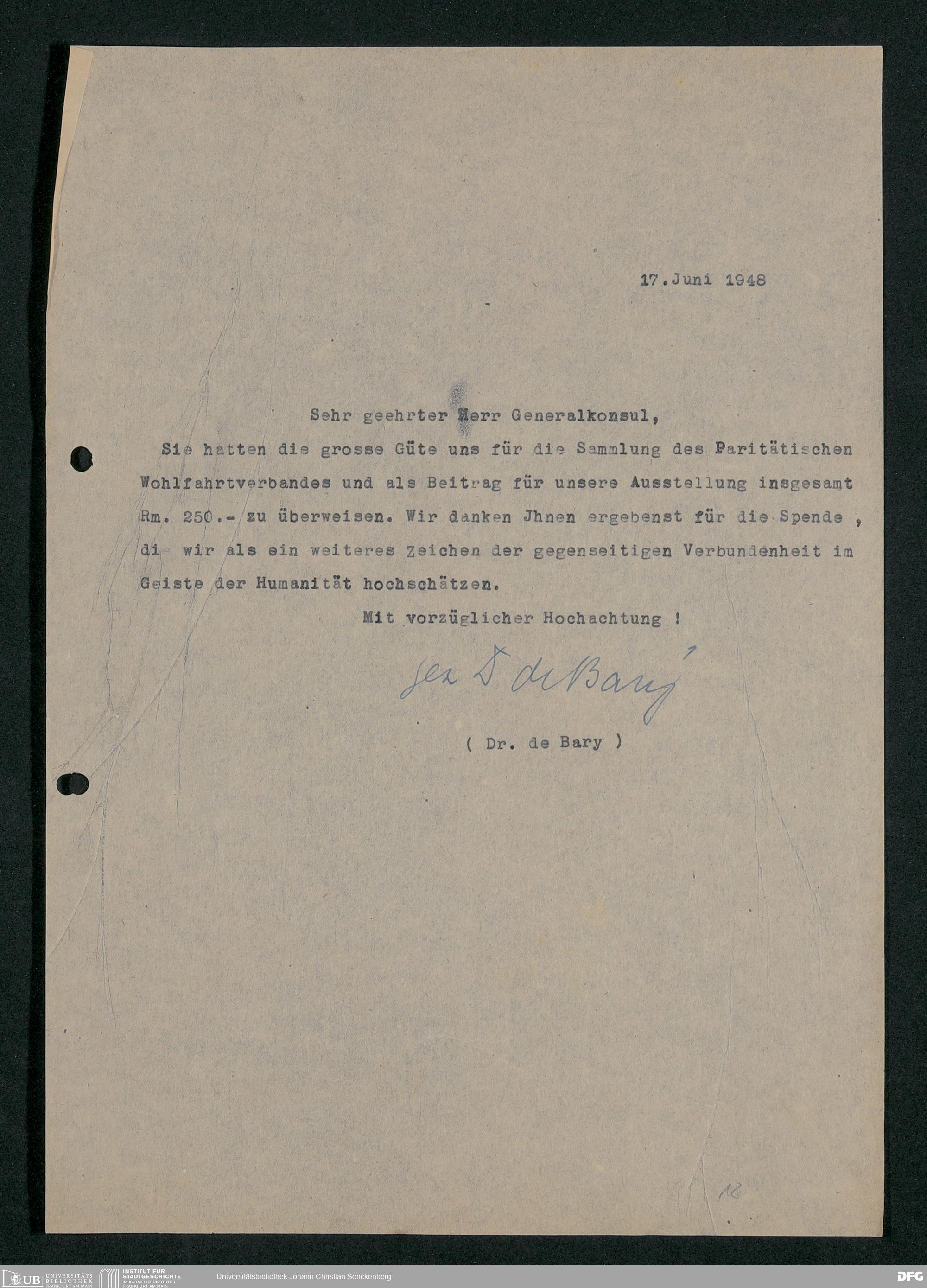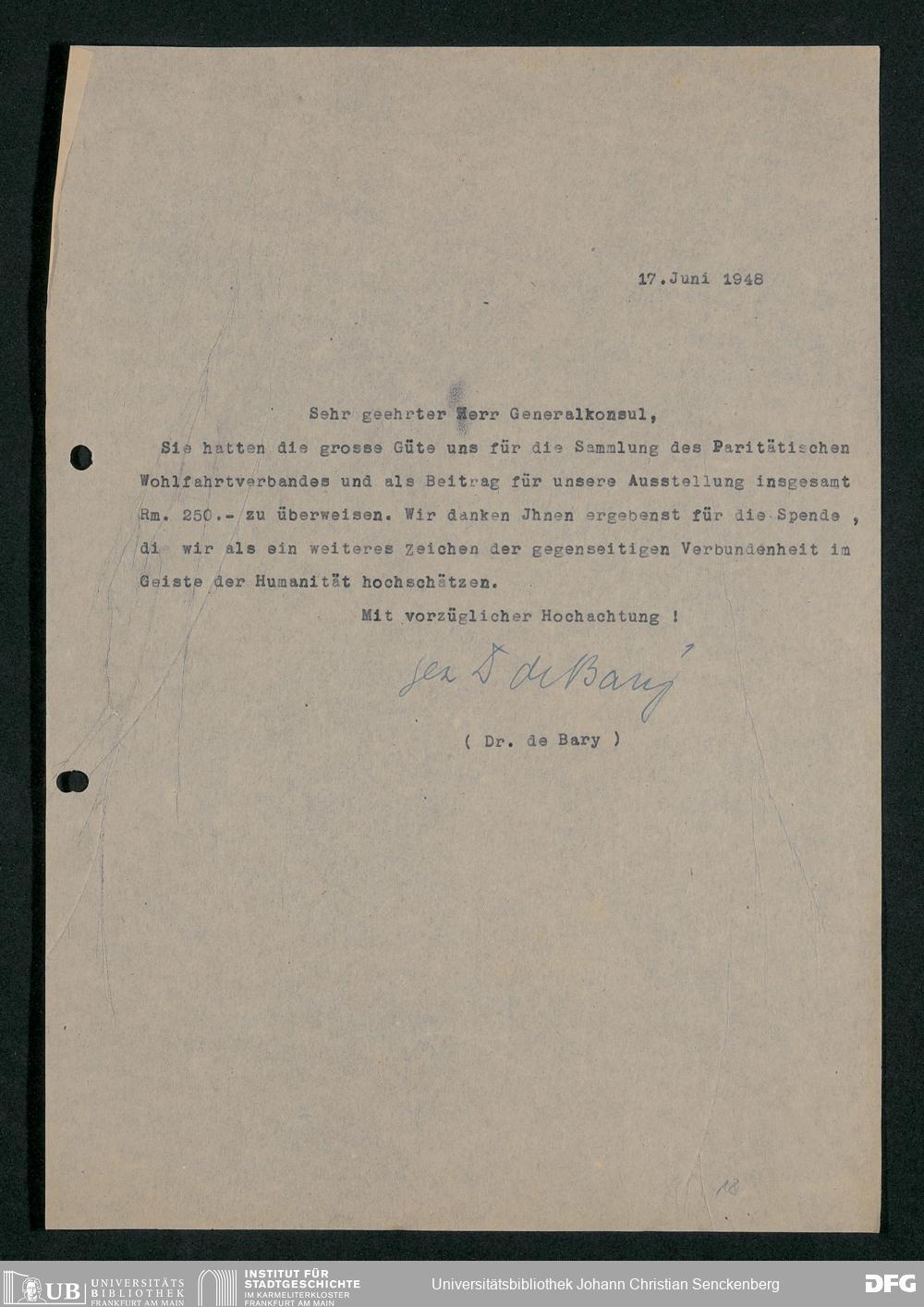 V48 Dr. Senckenbergische Stiftung, 778 - Handakten August de Barys