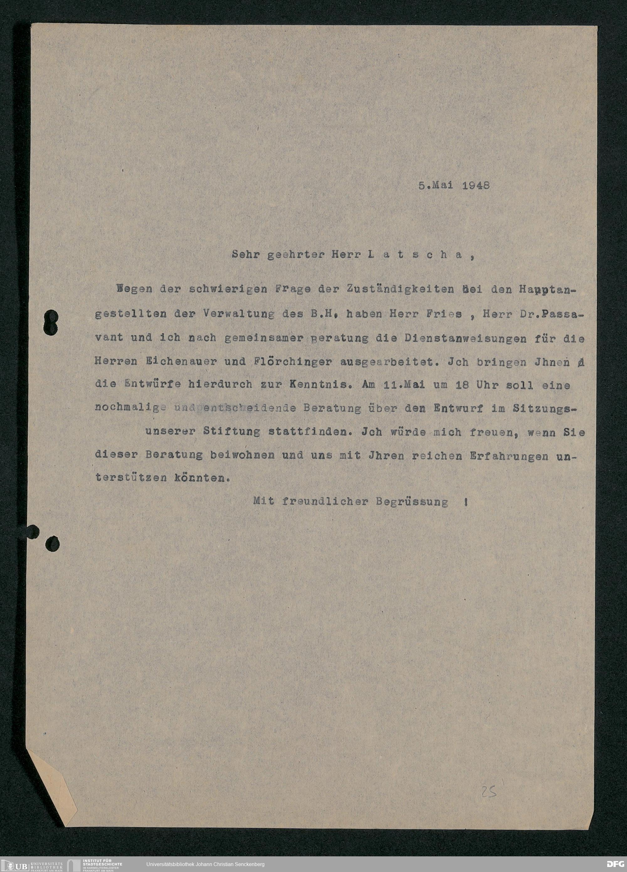 V48 Dr. Senckenbergische Stiftung, 778 - Handakten August de Barys