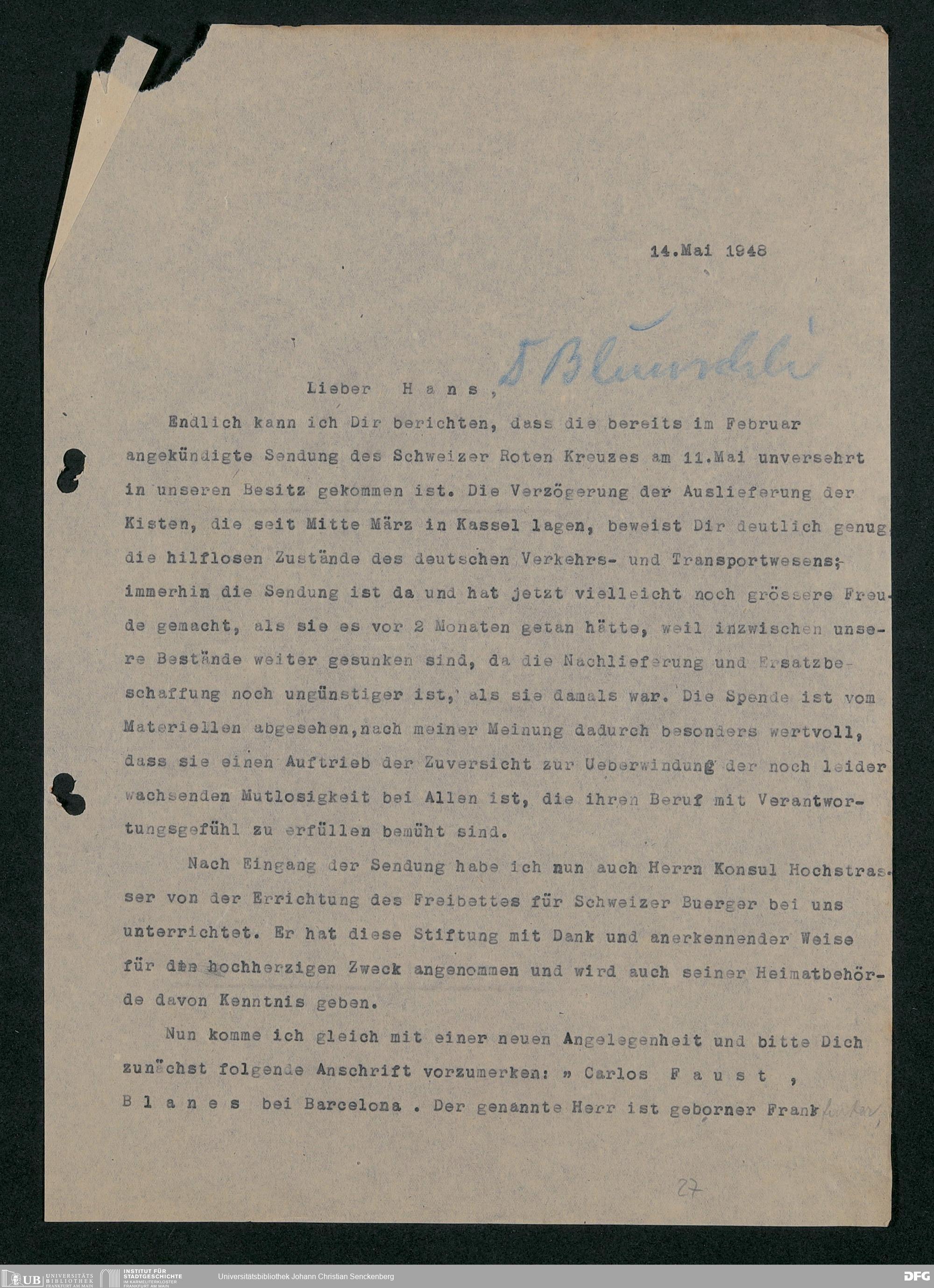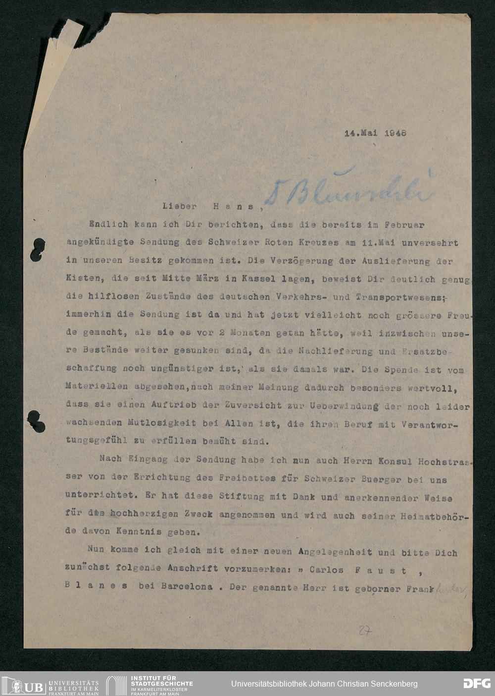 V48 Dr. Senckenbergische Stiftung, 778 - Handakten August de Barys