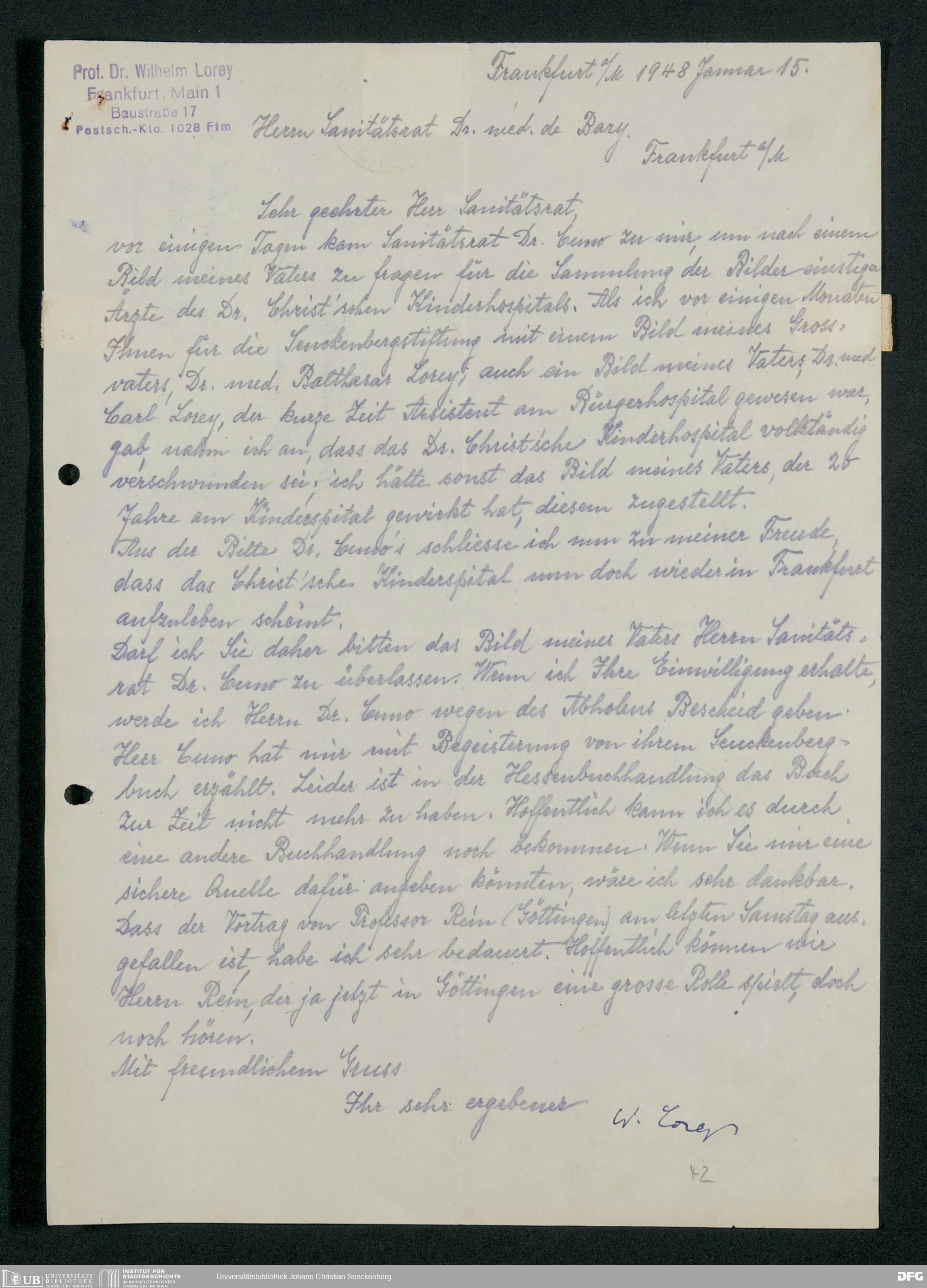 V48 Dr. Senckenbergische Stiftung, 778 - Handakten August de Barys