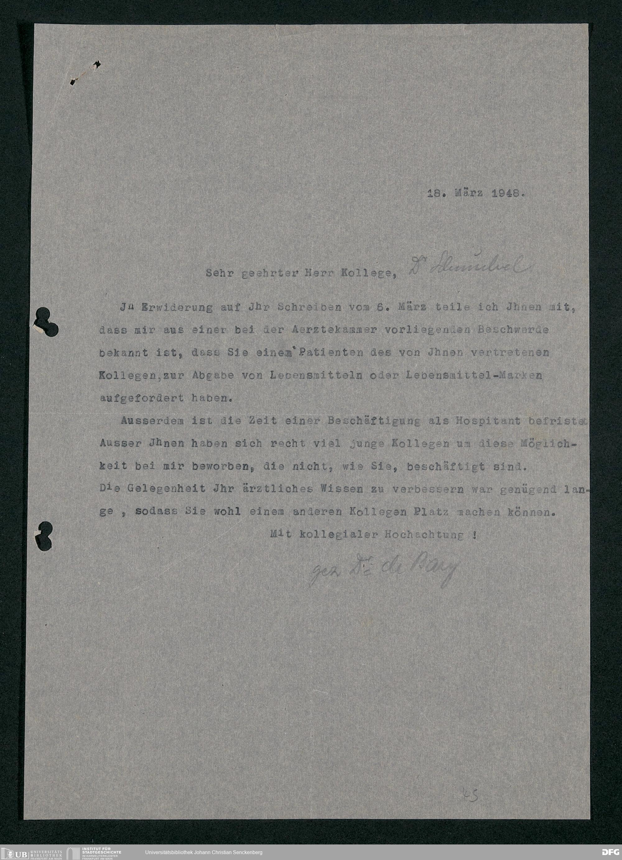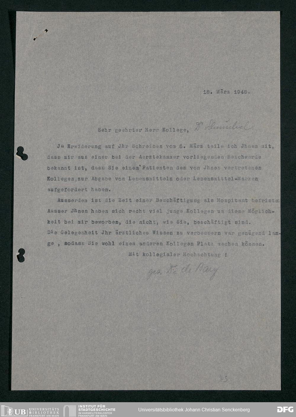 V48 Dr. Senckenbergische Stiftung, 778 - Handakten August de Barys
