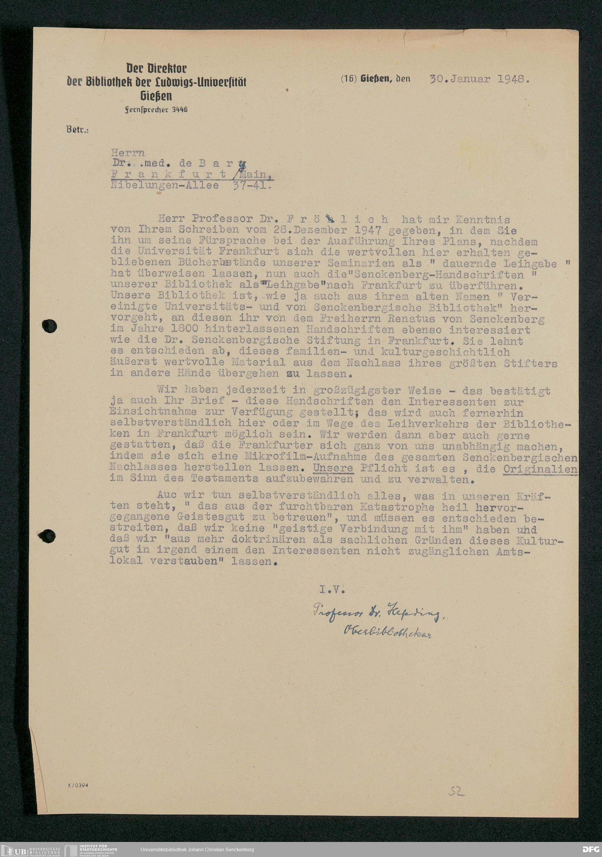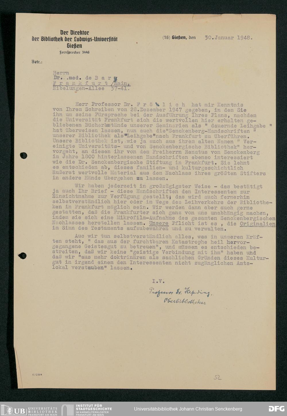 V48 Dr. Senckenbergische Stiftung, 778 - Handakten August de Barys