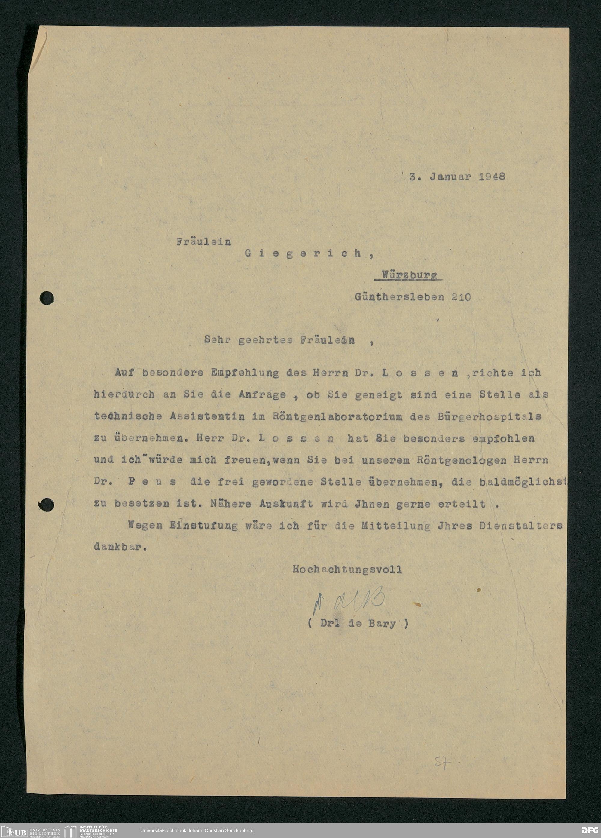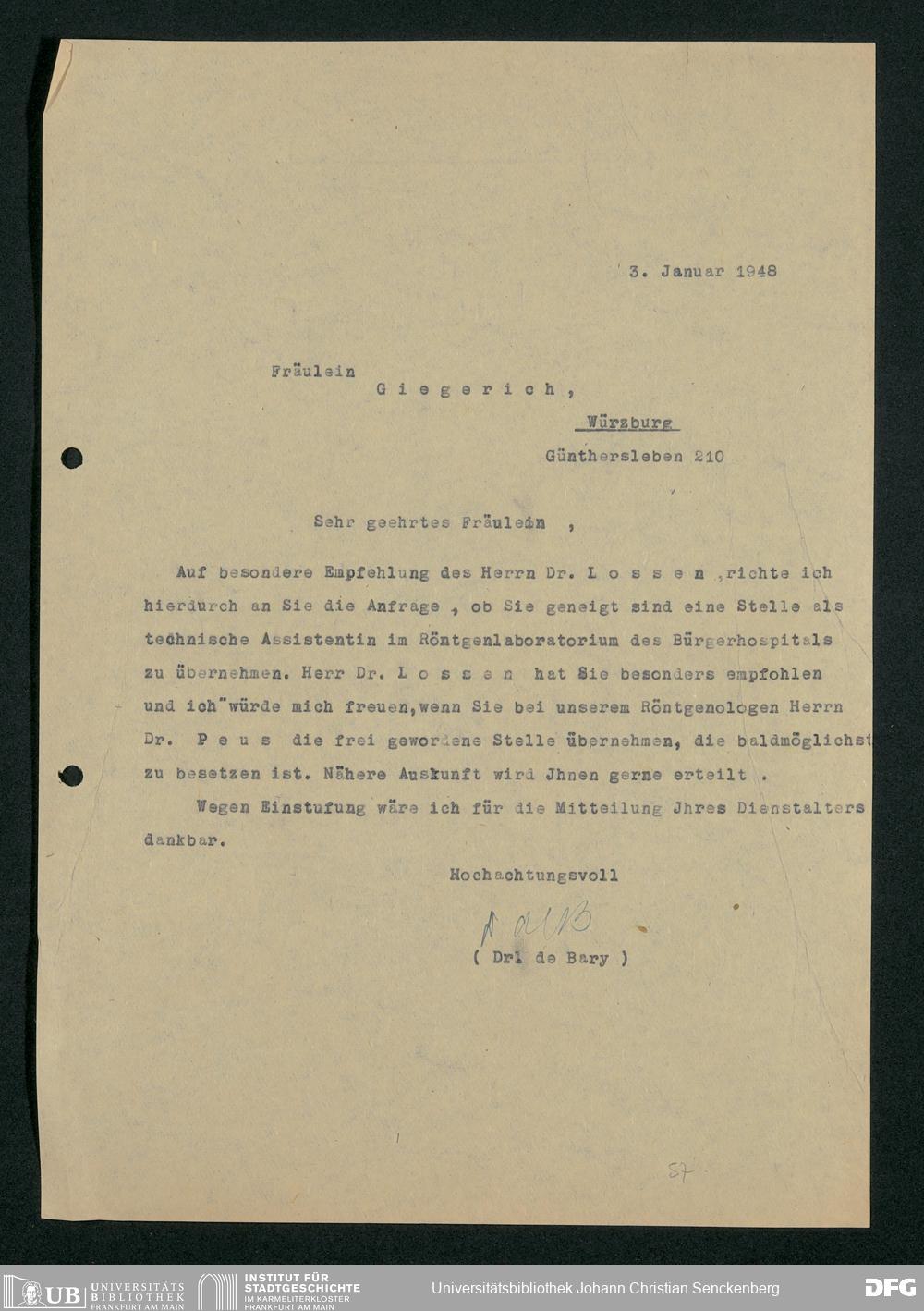 V48 Dr. Senckenbergische Stiftung, 778 - Handakten August de Barys