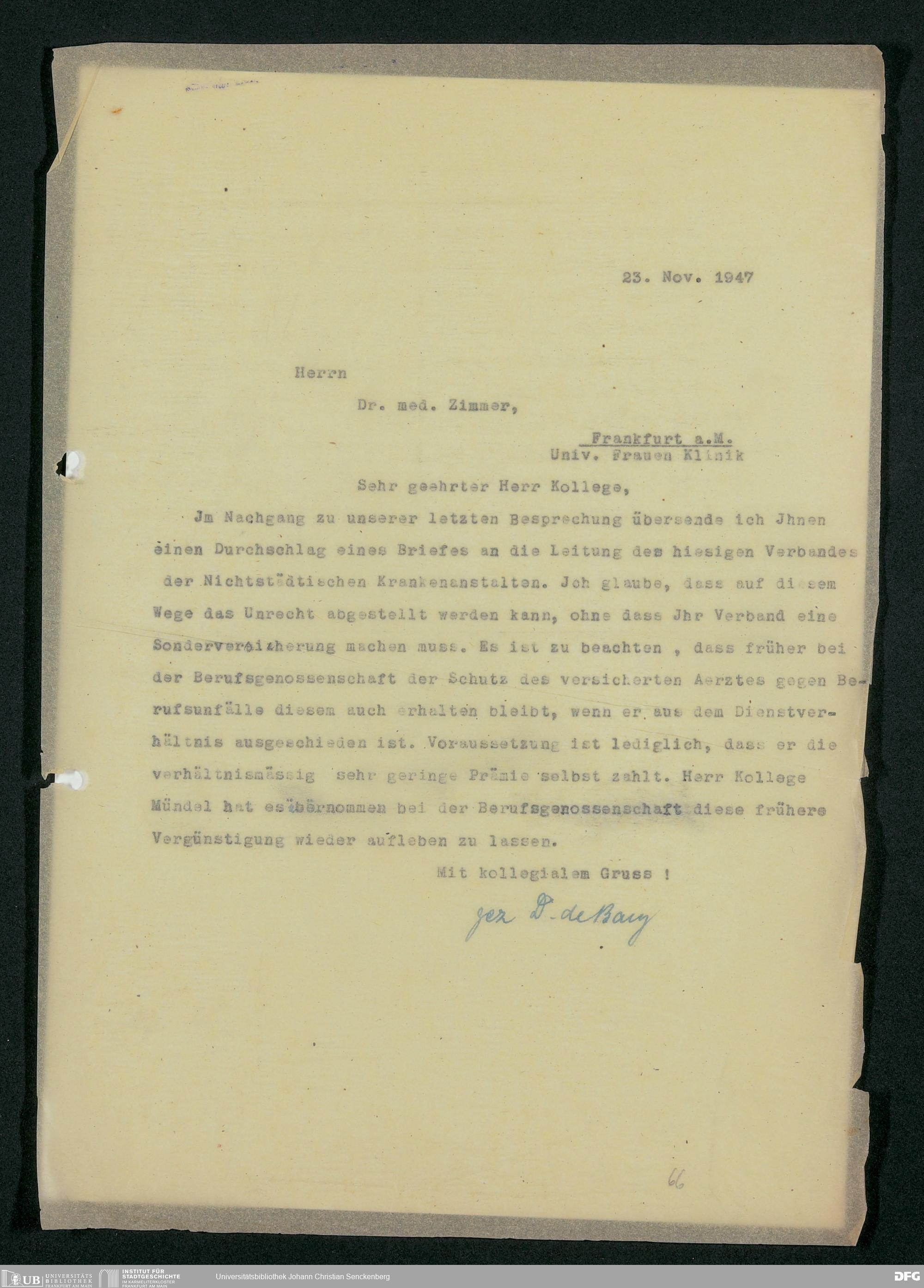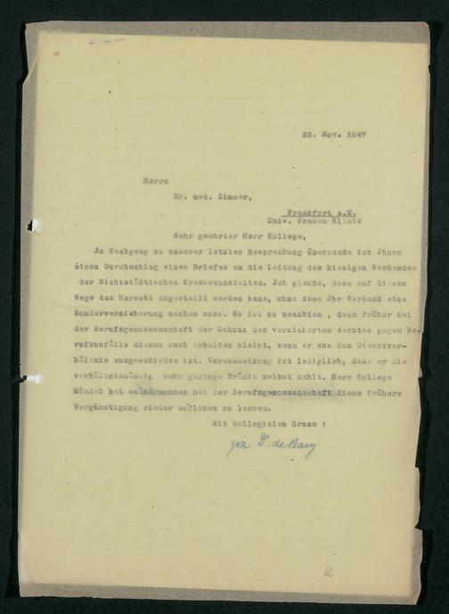 V48 Dr. Senckenbergische Stiftung, 778 - Handakten August de Barys