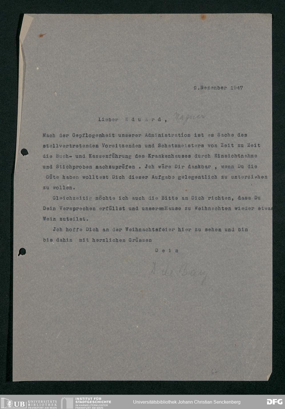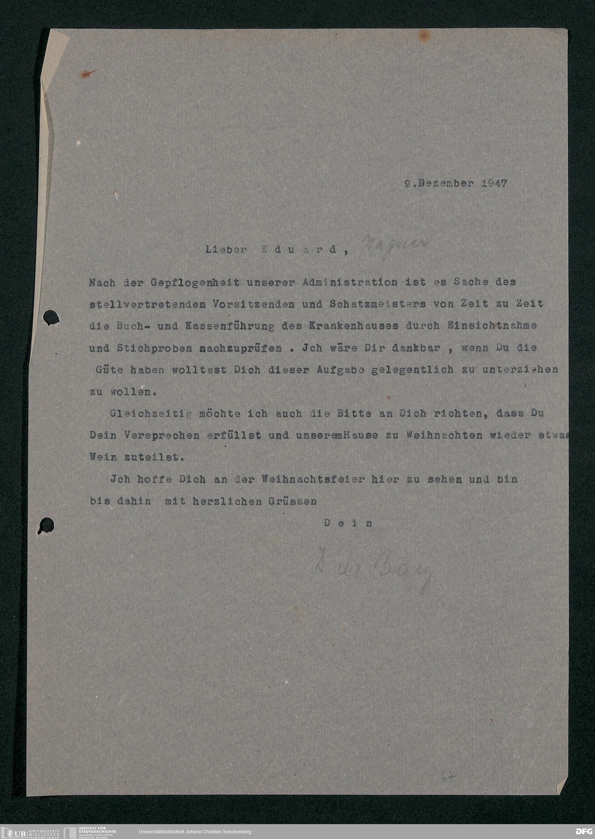 V48 Dr. Senckenbergische Stiftung, 778 - Handakten August de Barys