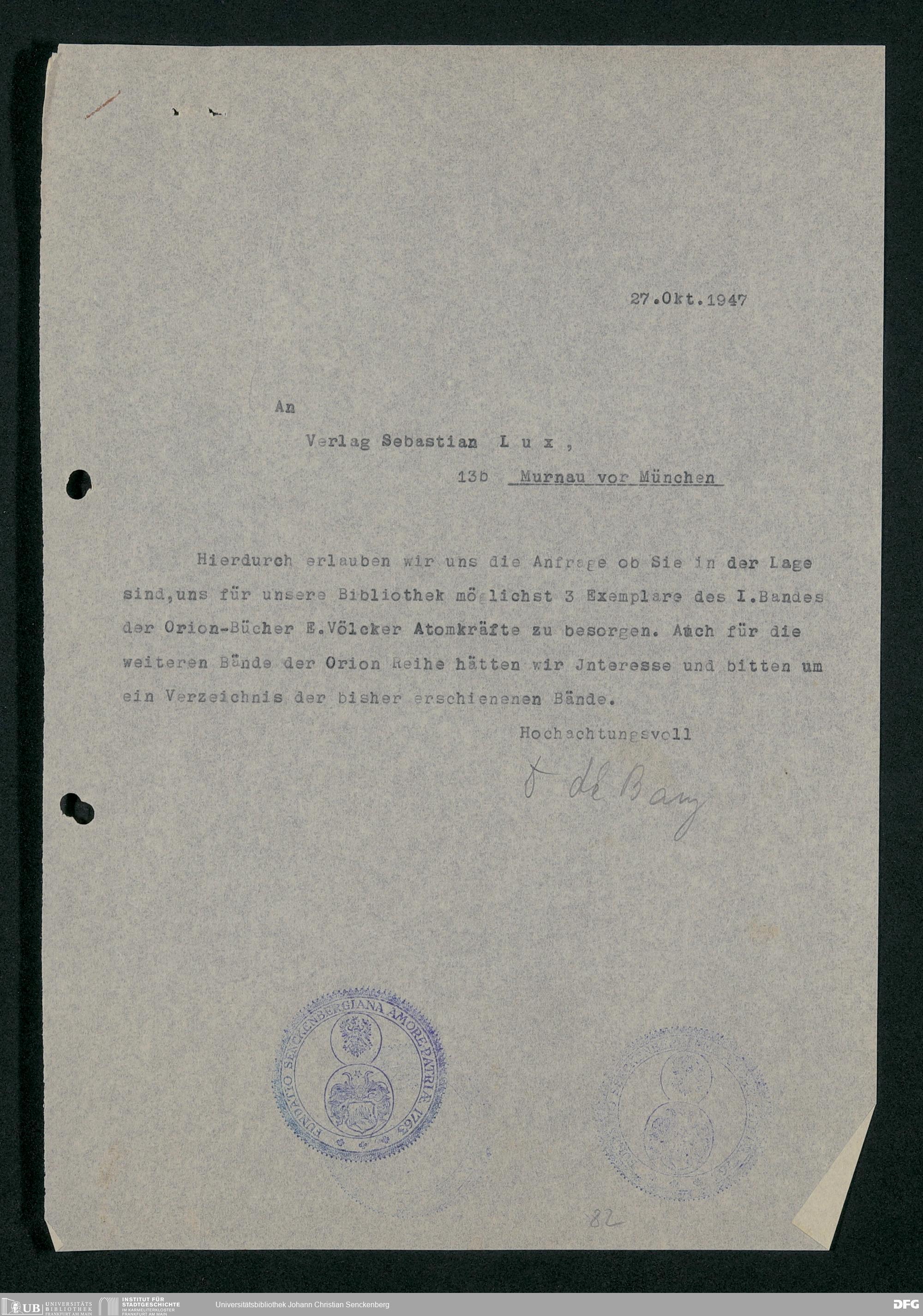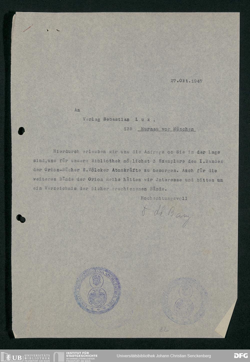 V48 Dr. Senckenbergische Stiftung, 778 - Handakten August de Barys