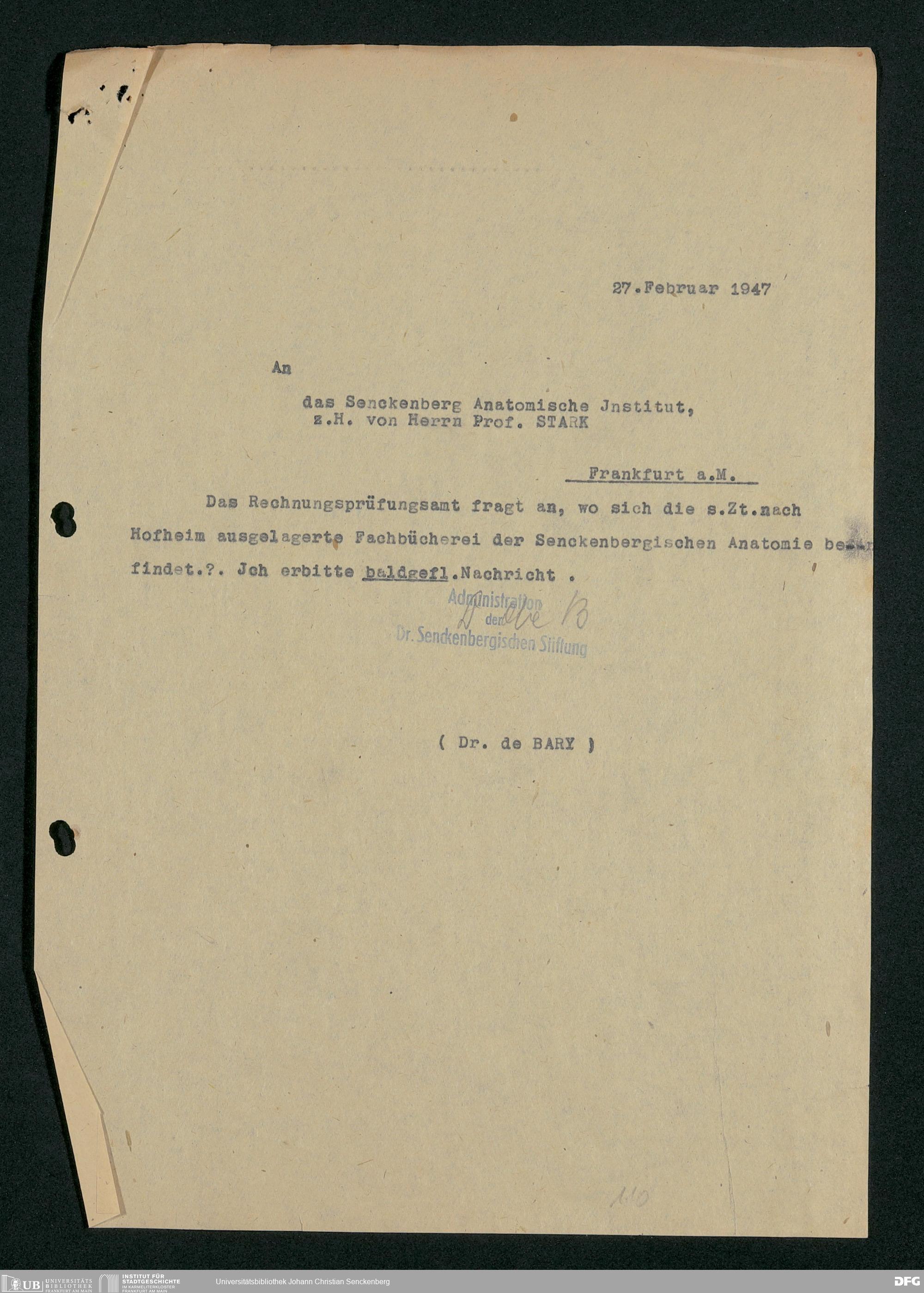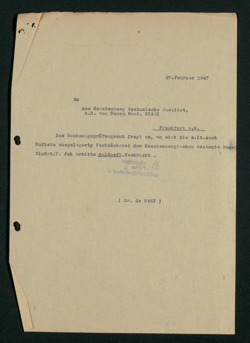 V48 Dr. Senckenbergische Stiftung, 778 - Handakten August de Barys