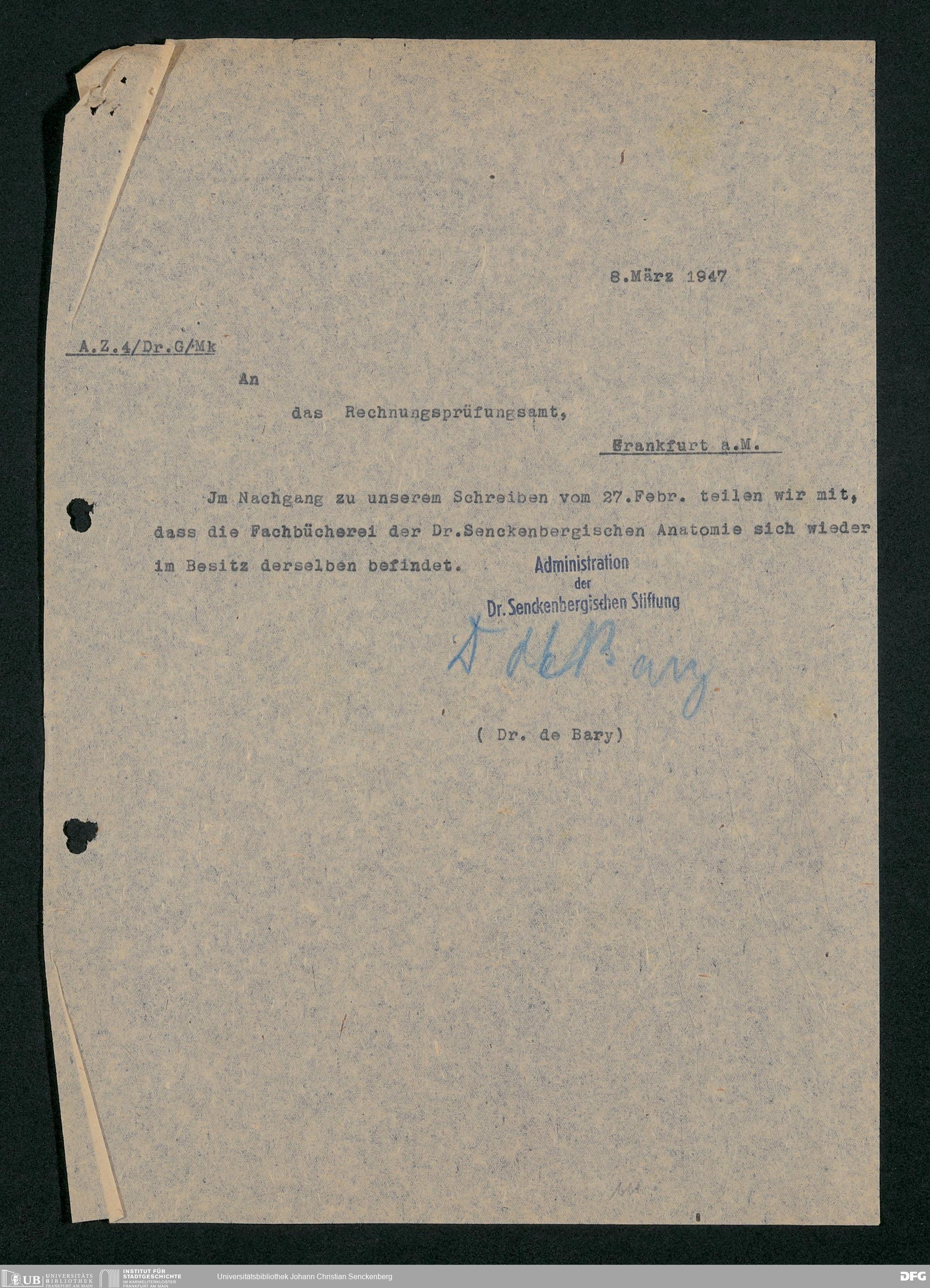 V48 Dr. Senckenbergische Stiftung, 778 - Handakten August de Barys