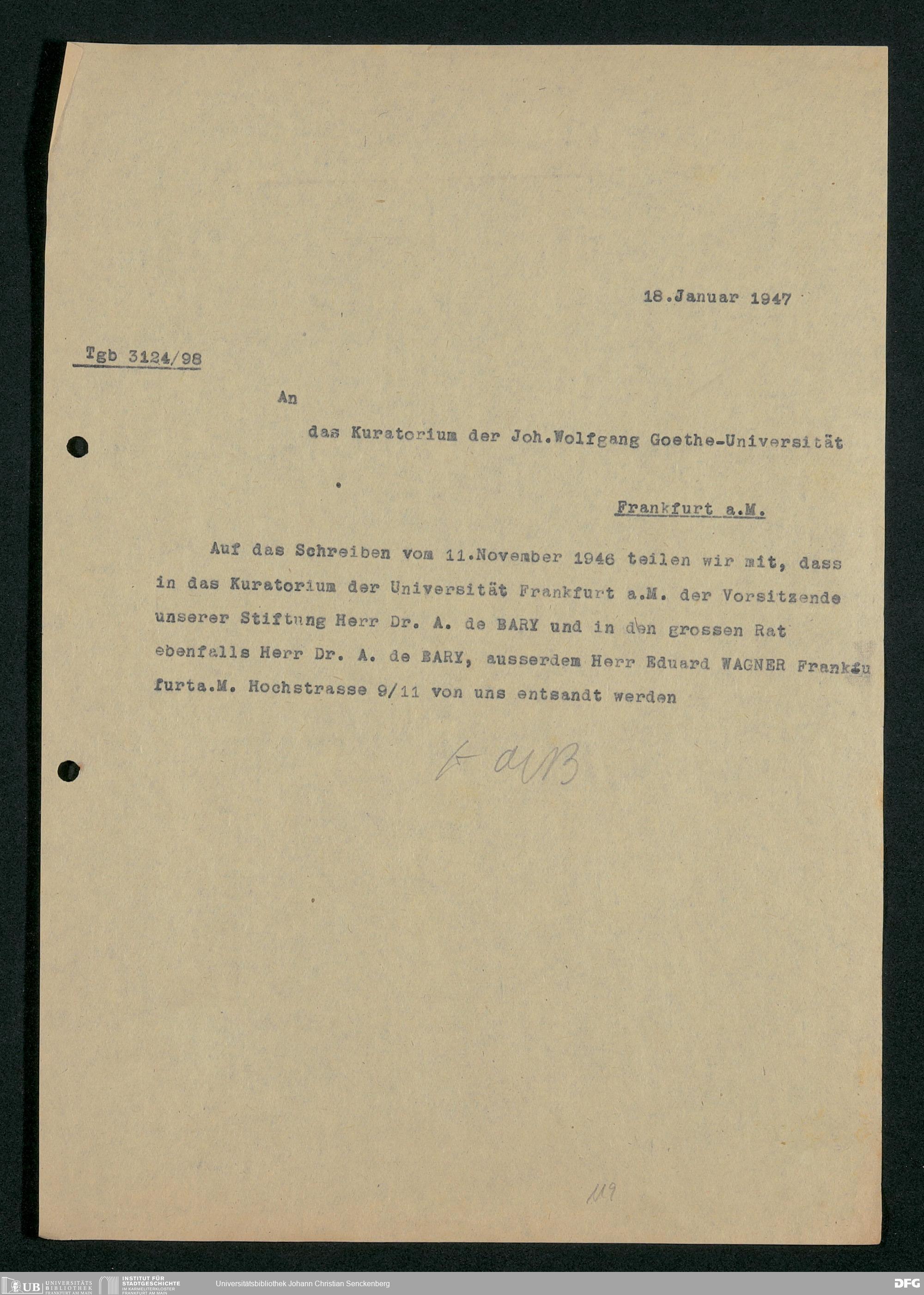 V48 Dr. Senckenbergische Stiftung, 778 - Handakten August de Barys