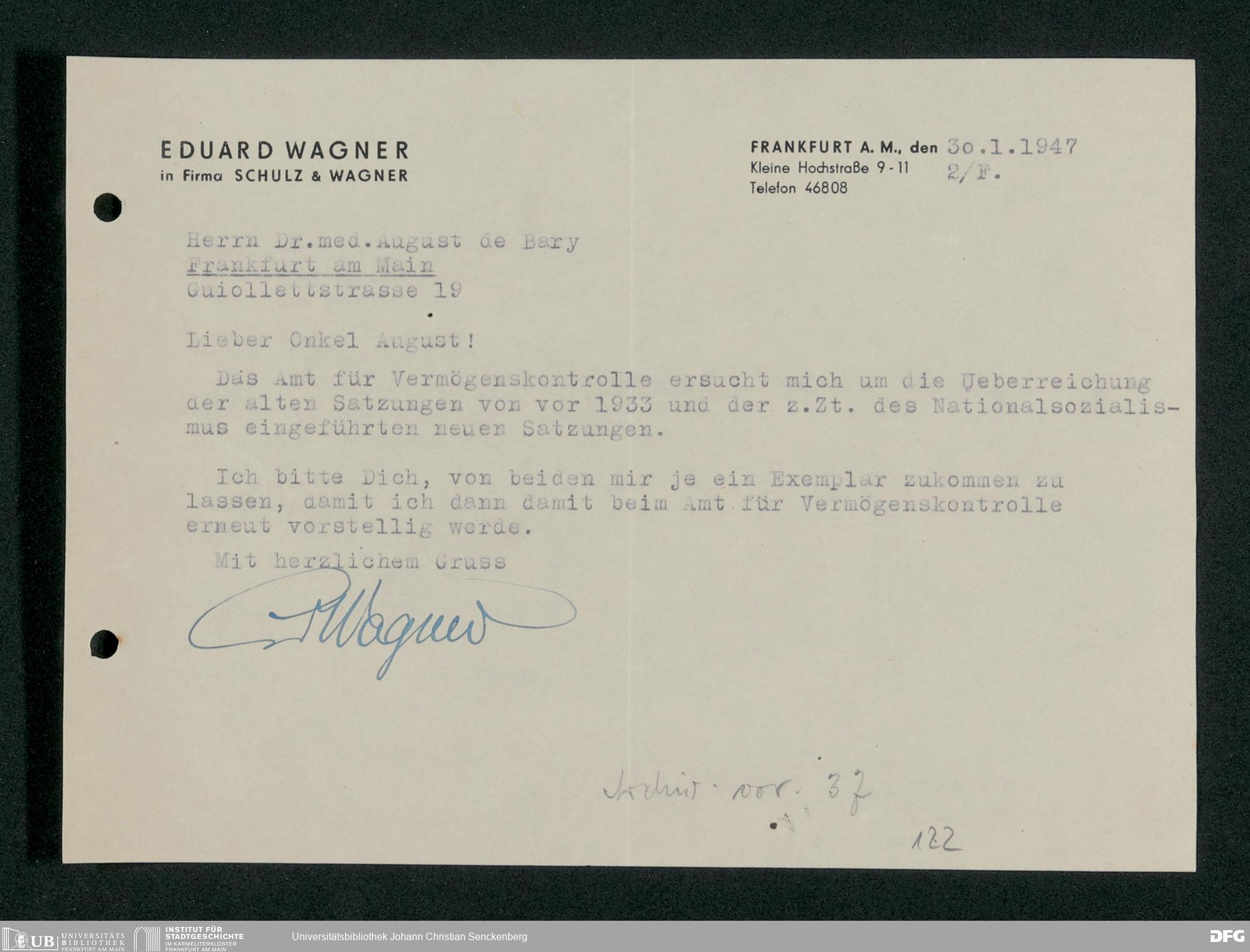 V48 Dr. Senckenbergische Stiftung, 778 - Handakten August de Barys