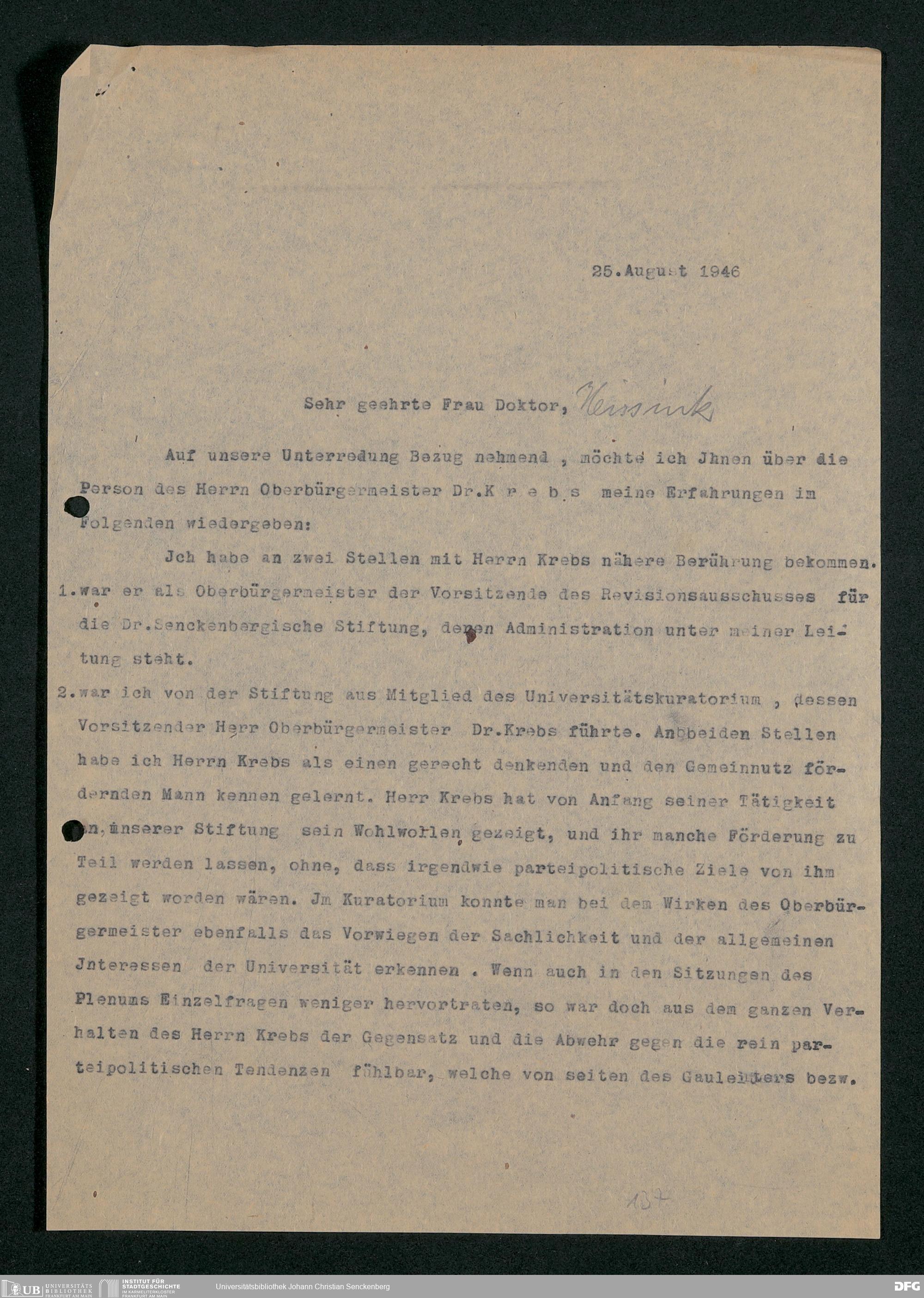 V48 Dr. Senckenbergische Stiftung, 778 - Handakten August de Barys