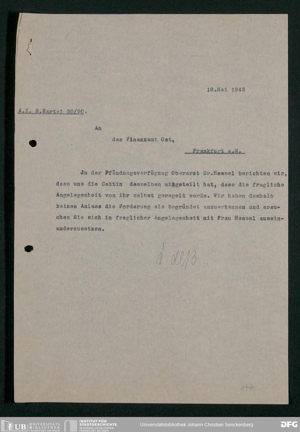 V48 Dr. Senckenbergische Stiftung, 778 - Handakten August de Barys