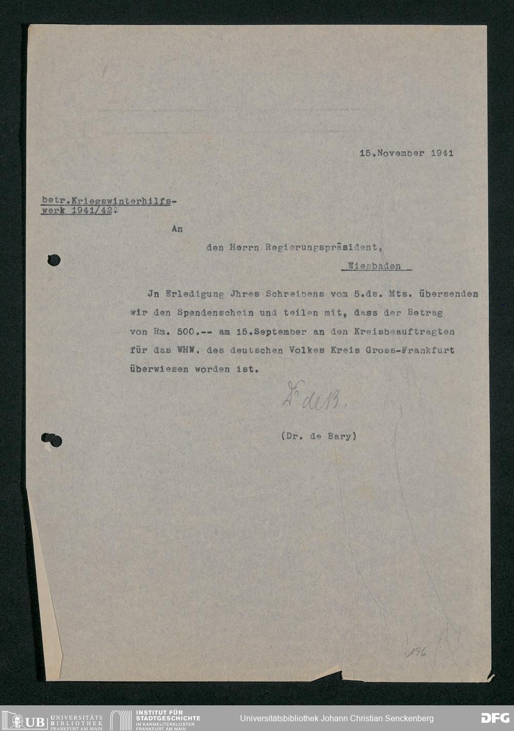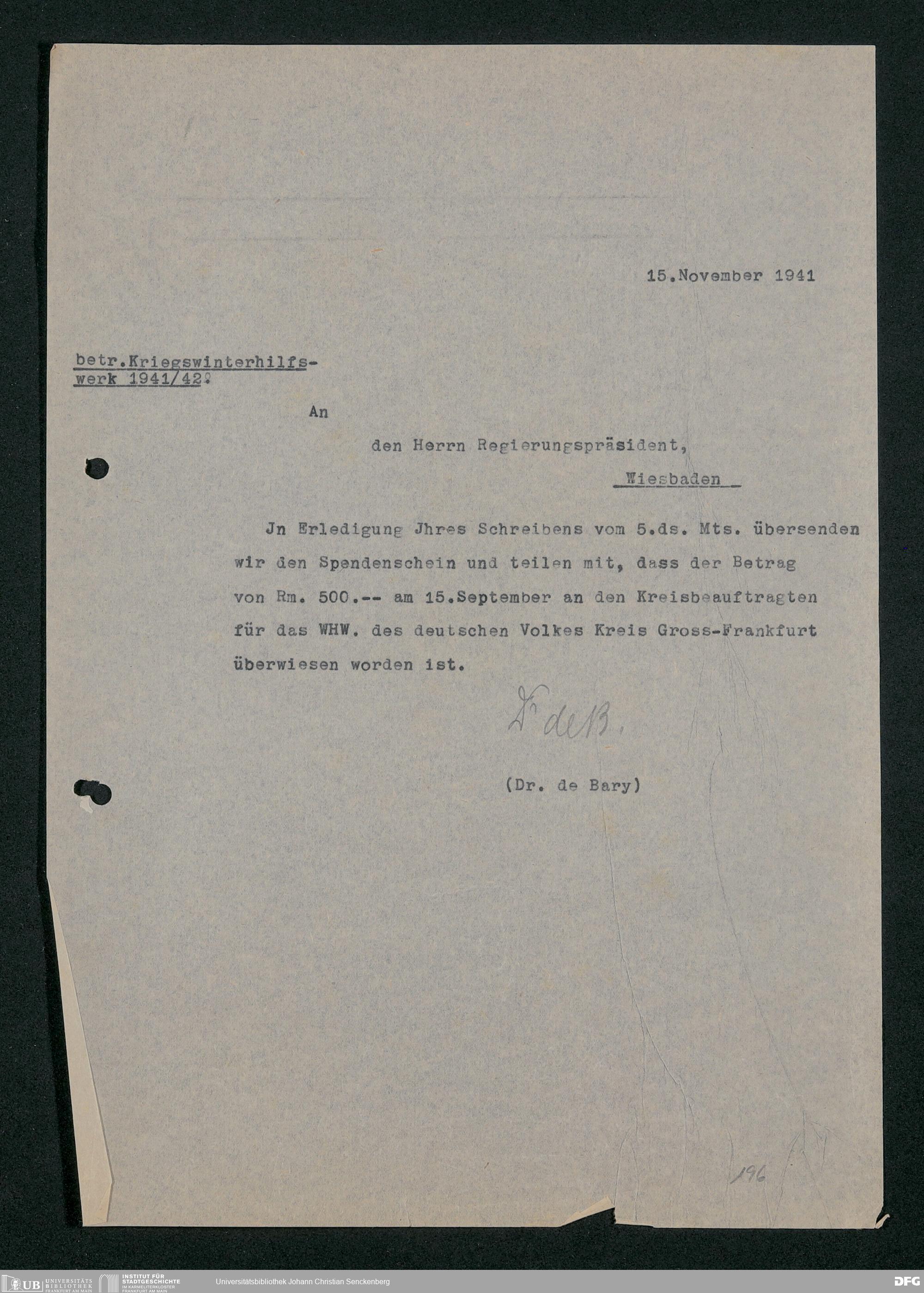 V48 Dr. Senckenbergische Stiftung, 778 - Handakten August de Barys