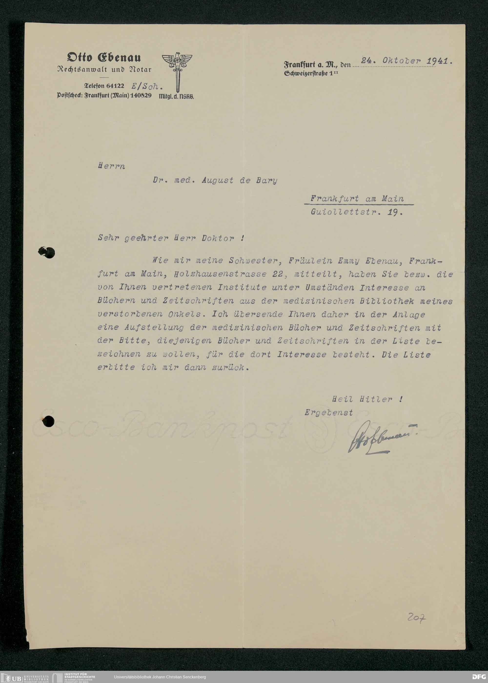 V48 Dr. Senckenbergische Stiftung, 778 - Handakten August de Barys