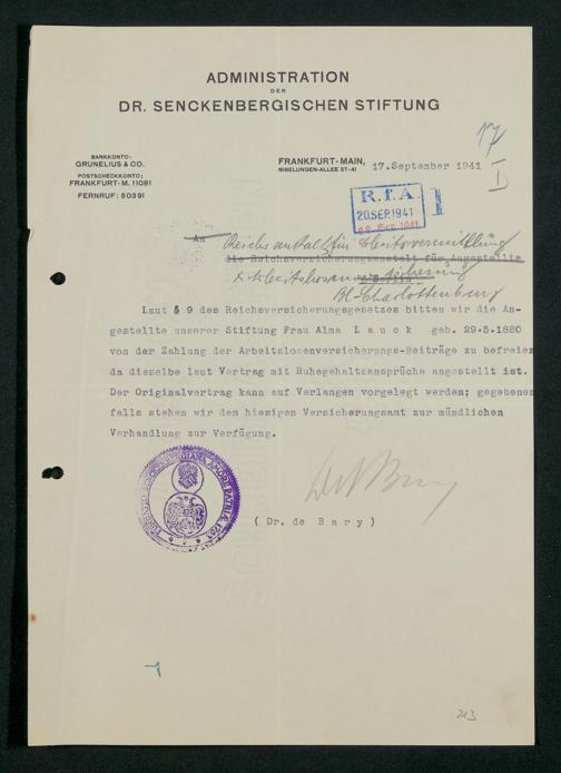 V48 Dr. Senckenbergische Stiftung, 778 - Handakten August de Barys