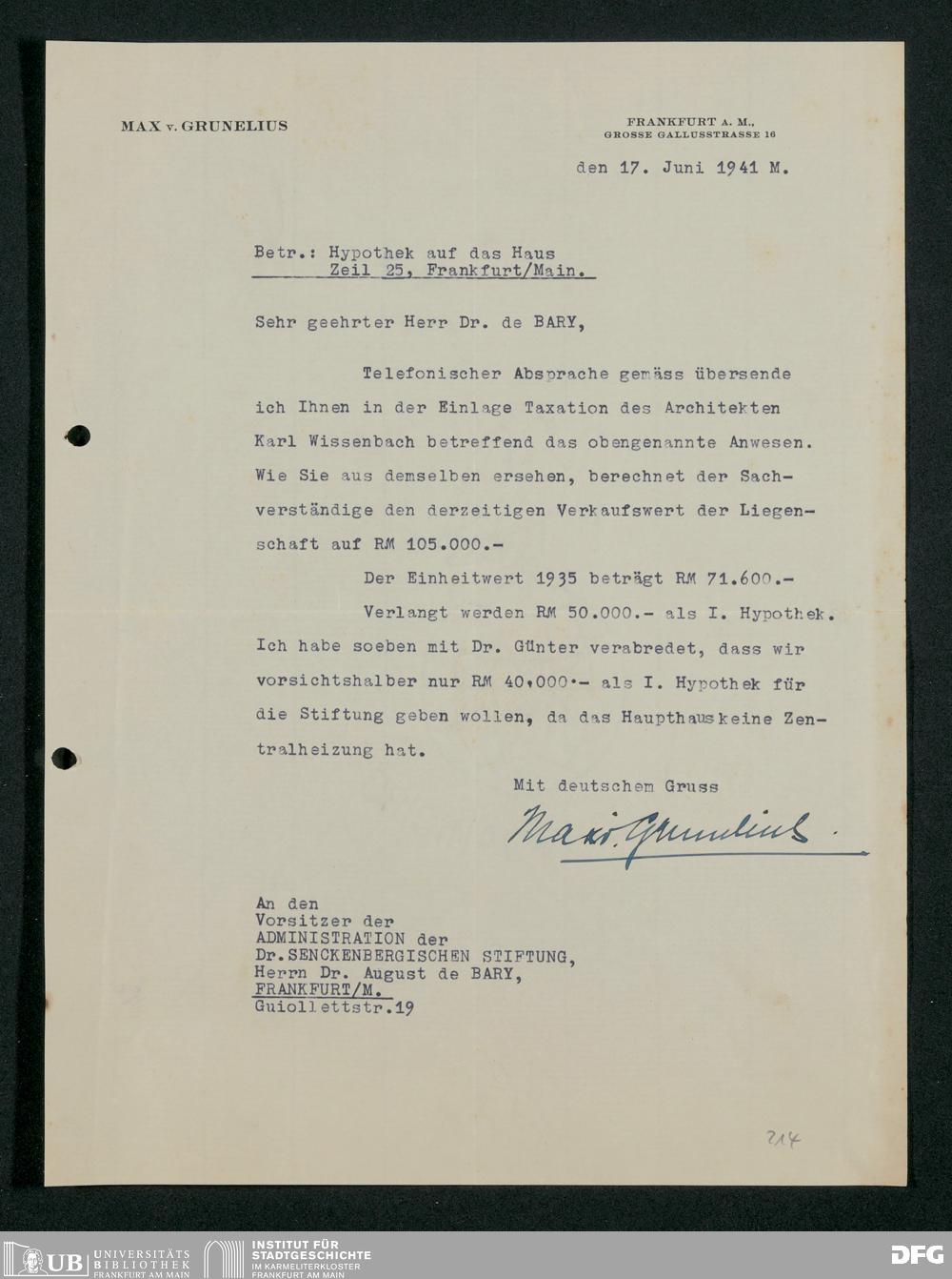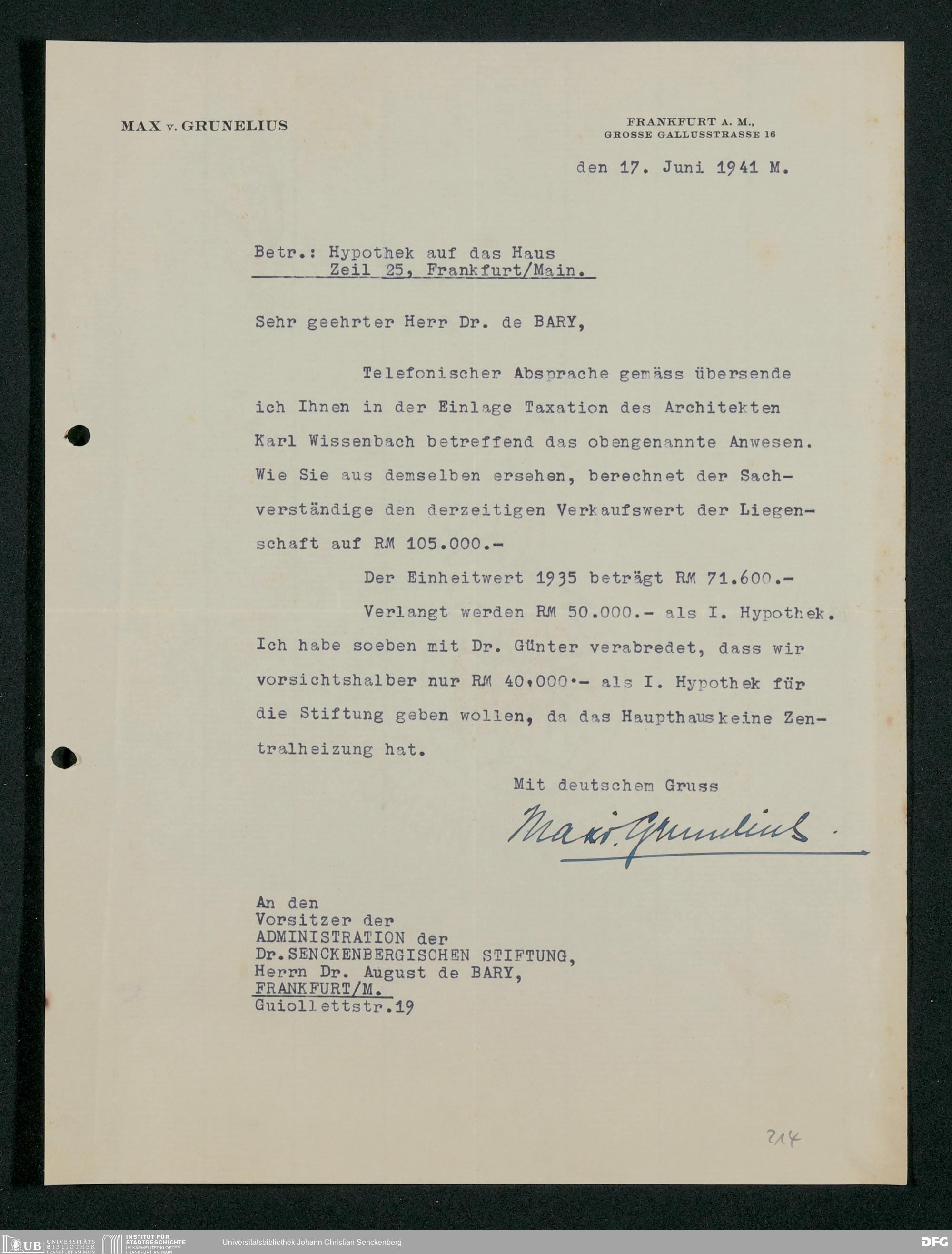 V48 Dr. Senckenbergische Stiftung, 778 - Handakten August de Barys