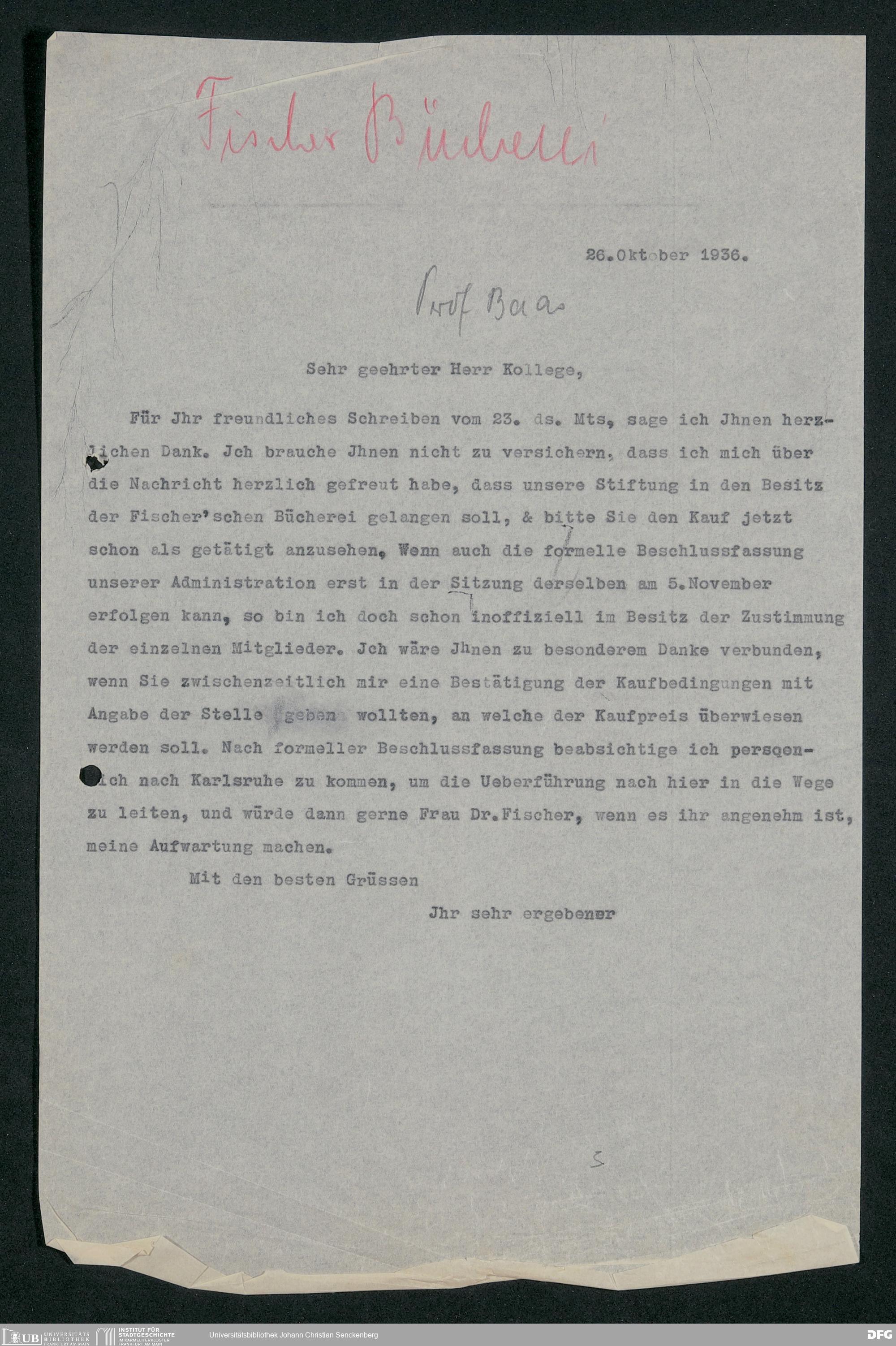 V48 Dr. Senckenbergische Stiftung, 782 - Ankauf der Bibliothek von Dr. Alfons Fischer durch die Senckenbergische Stiftung