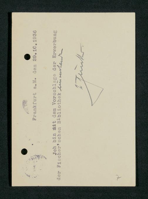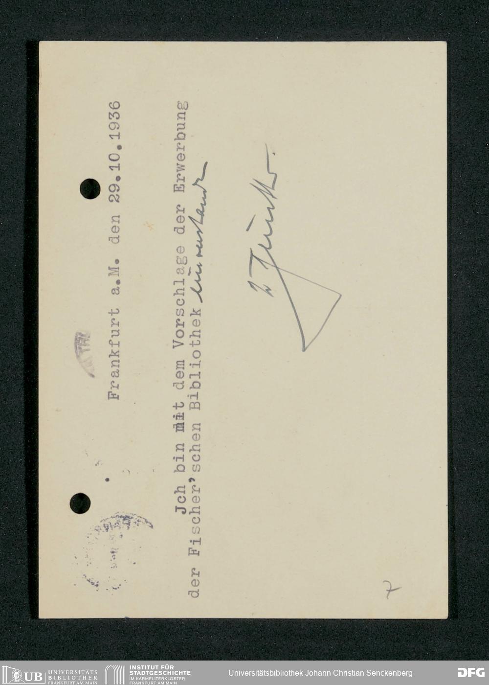 V48 Dr. Senckenbergische Stiftung, 782 - Ankauf der Bibliothek von Dr. Alfons Fischer durch die Senckenbergische Stiftung