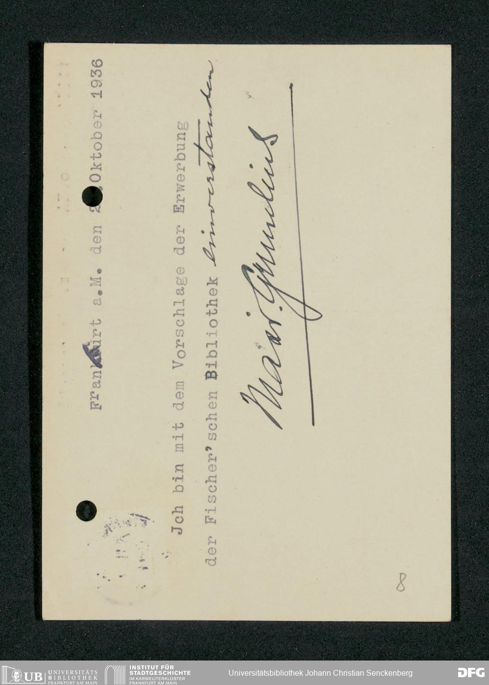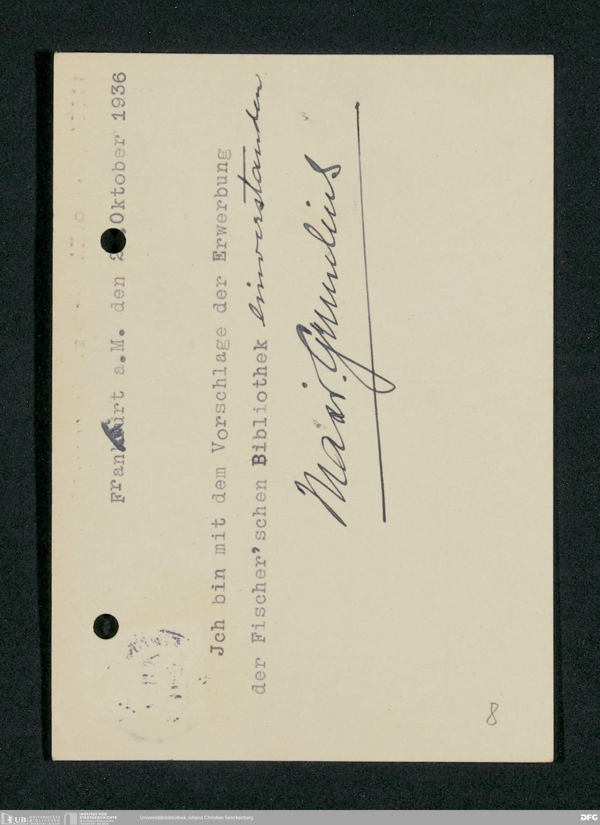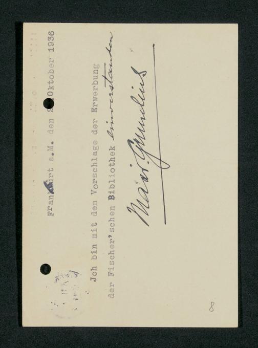 V48 Dr. Senckenbergische Stiftung, 782 - Ankauf der Bibliothek von Dr. Alfons Fischer durch die Senckenbergische Stiftung