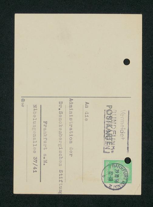 V48 Dr. Senckenbergische Stiftung, 782 - Ankauf der Bibliothek von Dr. Alfons Fischer durch die Senckenbergische Stiftung