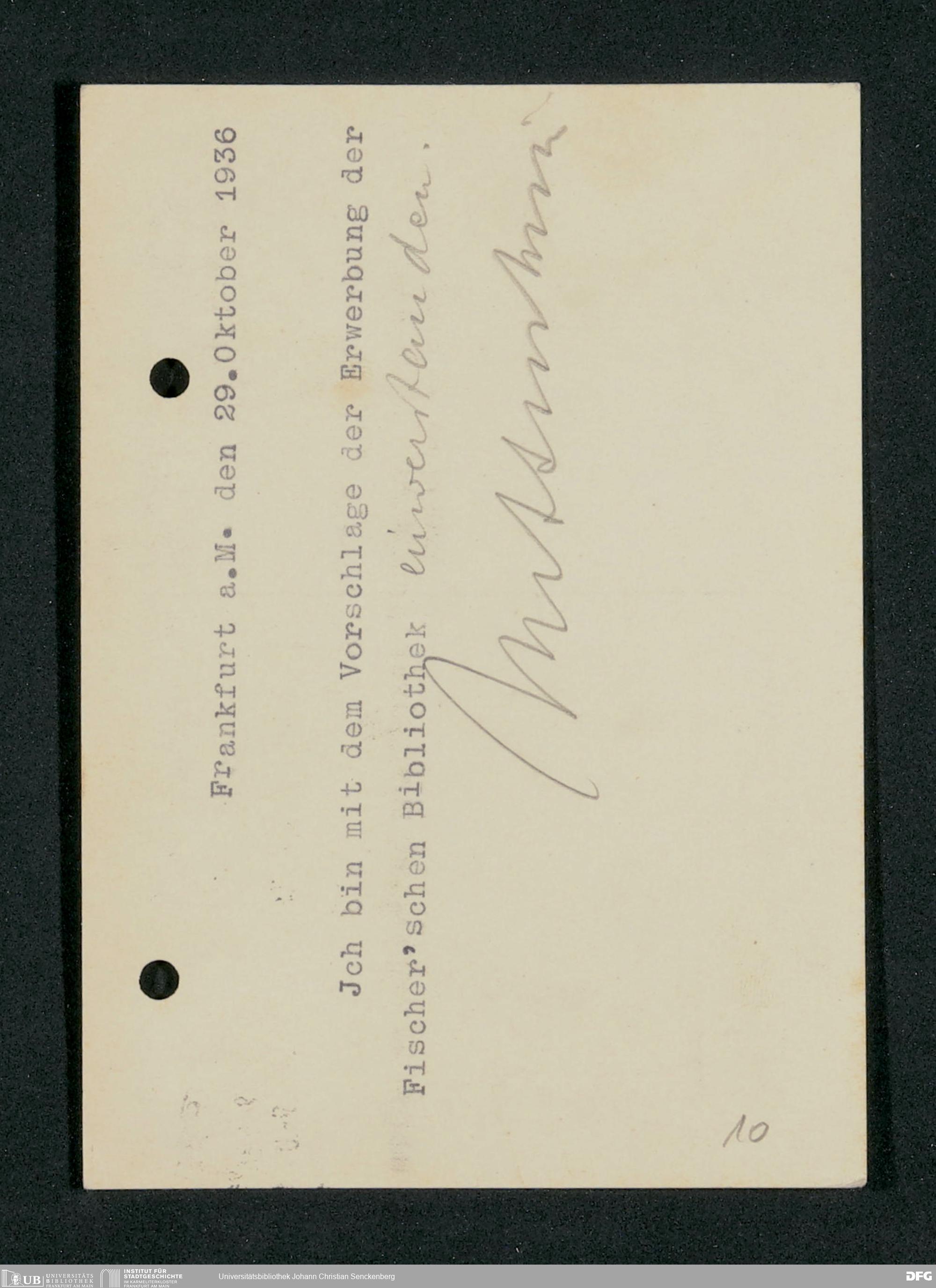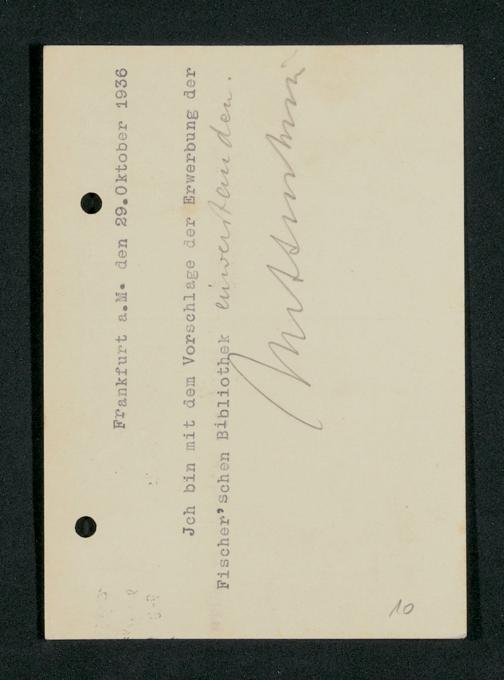 V48 Dr. Senckenbergische Stiftung, 782 - Ankauf der Bibliothek von Dr. Alfons Fischer durch die Senckenbergische Stiftung