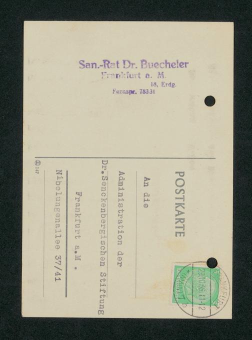 V48 Dr. Senckenbergische Stiftung, 782 - Ankauf der Bibliothek von Dr. Alfons Fischer durch die Senckenbergische Stiftung