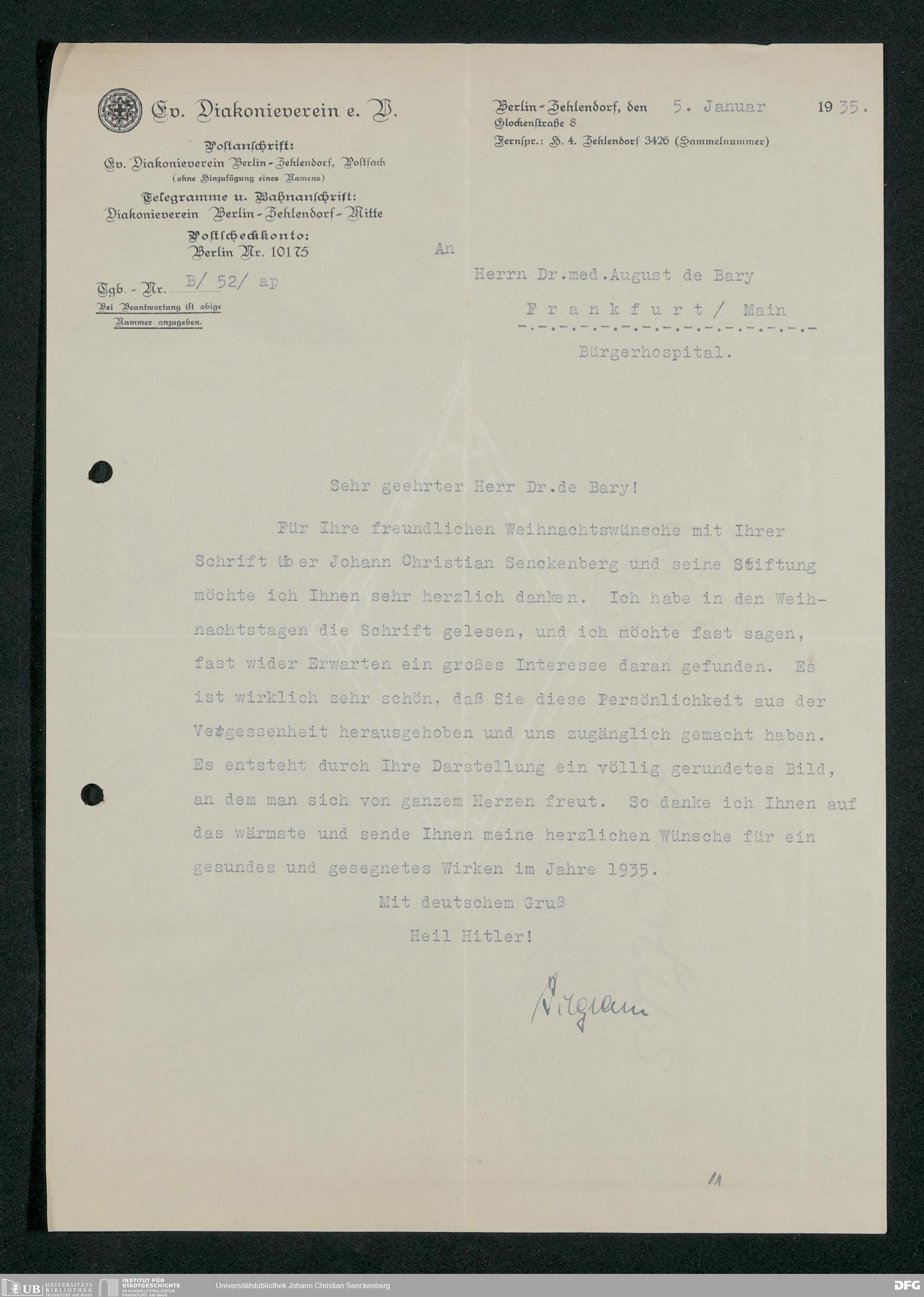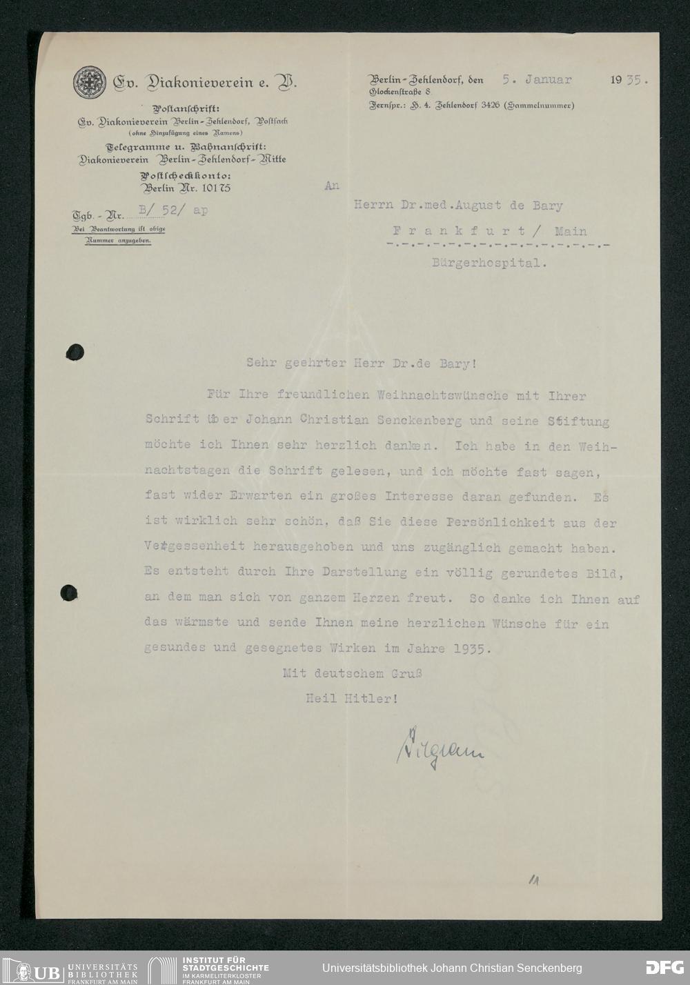 V48 Dr. Senckenbergische Stiftung, 790 - Dankschreiben an die Administration für erhaltene Freiexemplare der von August de Bary verfassten Biografie Johann Christian Senckenbergs
