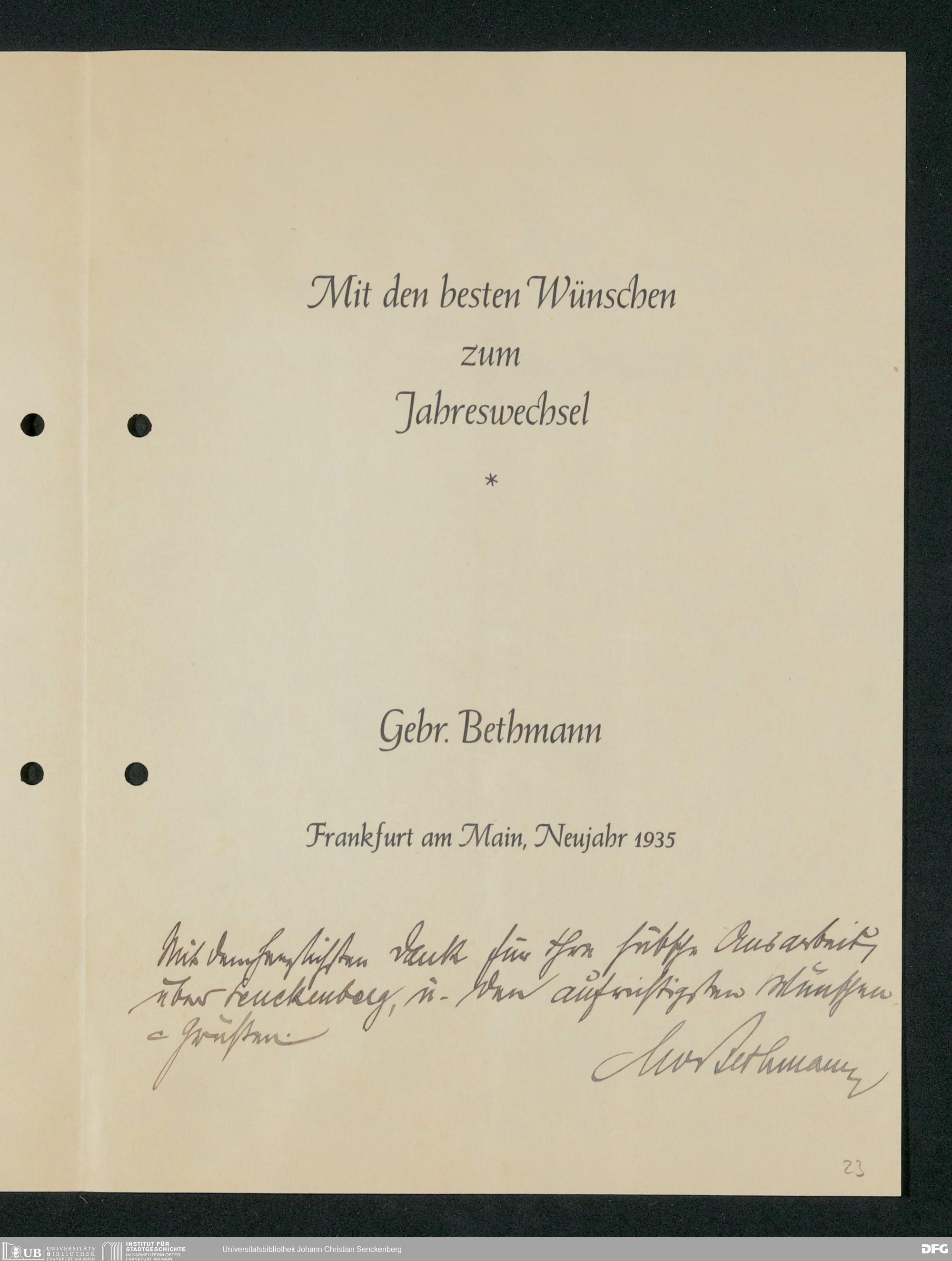 V48 Dr. Senckenbergische Stiftung, 790 - Dankschreiben an die Administration für erhaltene Freiexemplare der von August de Bary verfassten Biografie Johann Christian Senckenbergs
