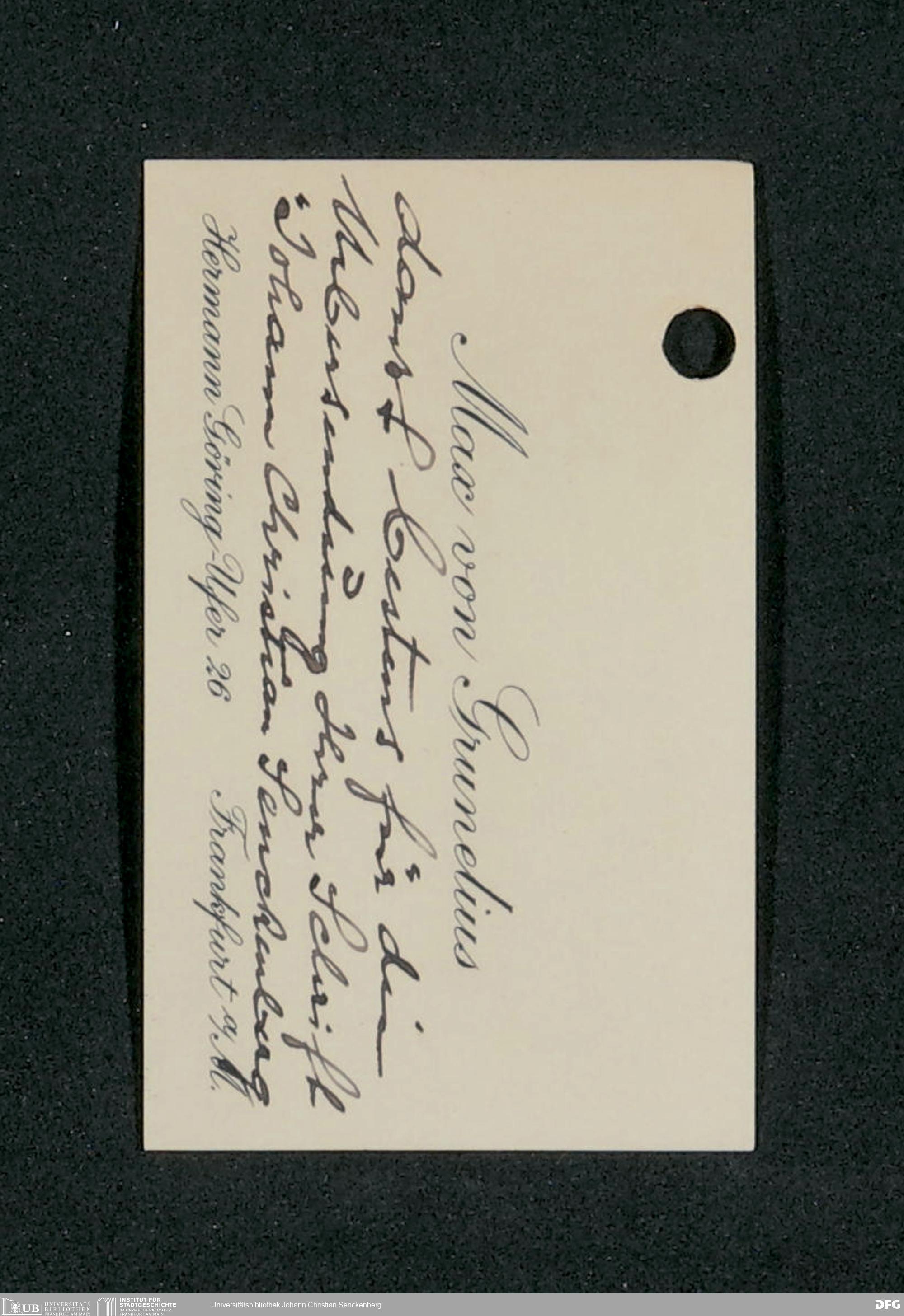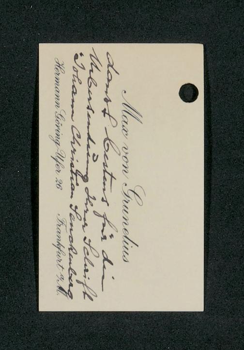 V48 Dr. Senckenbergische Stiftung, 790 - Dankschreiben an die Administration für erhaltene Freiexemplare der von August de Bary verfassten Biografie Johann Christian Senckenbergs