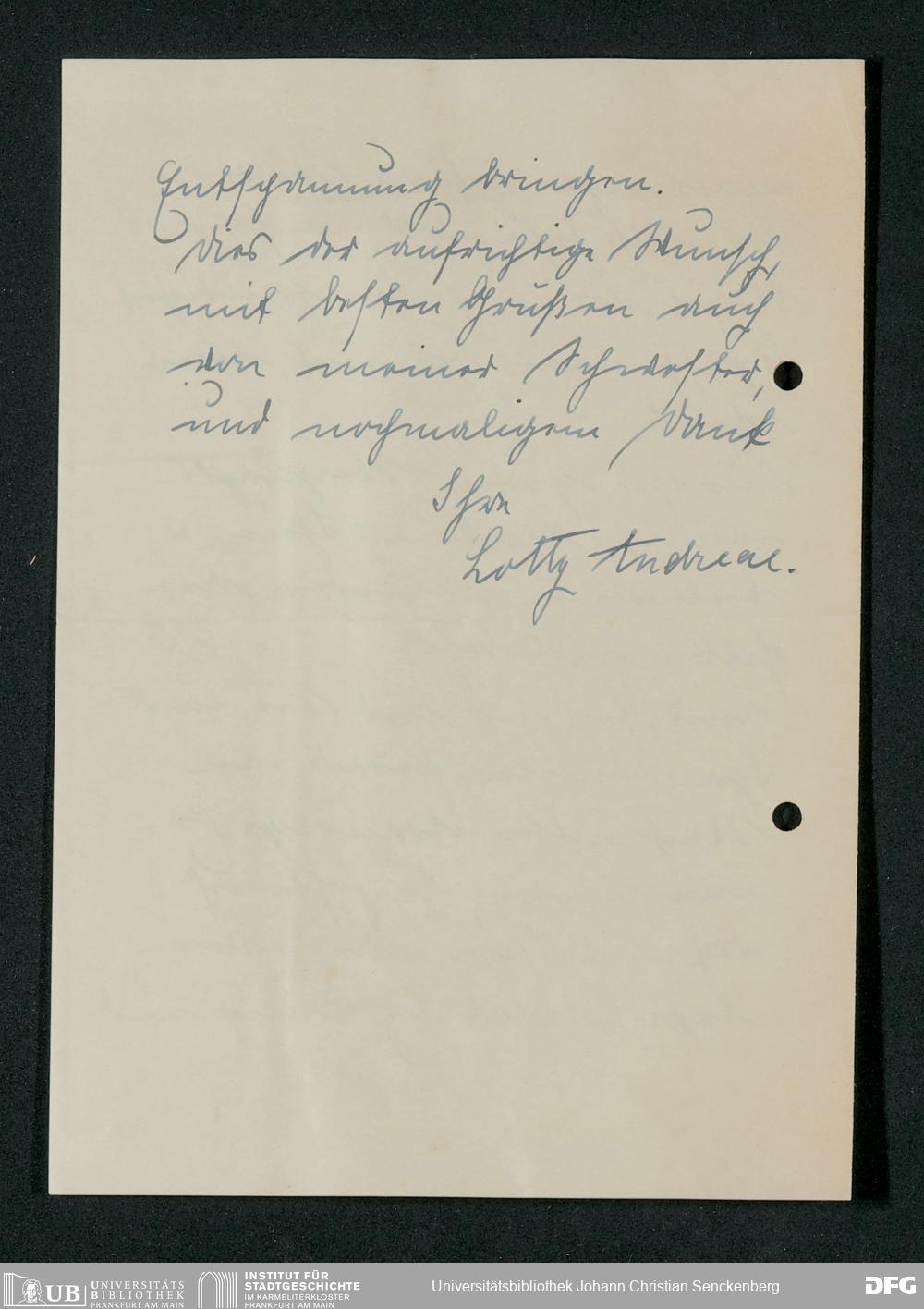 V48 Dr. Senckenbergische Stiftung, 790 - Dankschreiben an die Administration für erhaltene Freiexemplare der von August de Bary verfassten Biografie Johann Christian Senckenbergs
