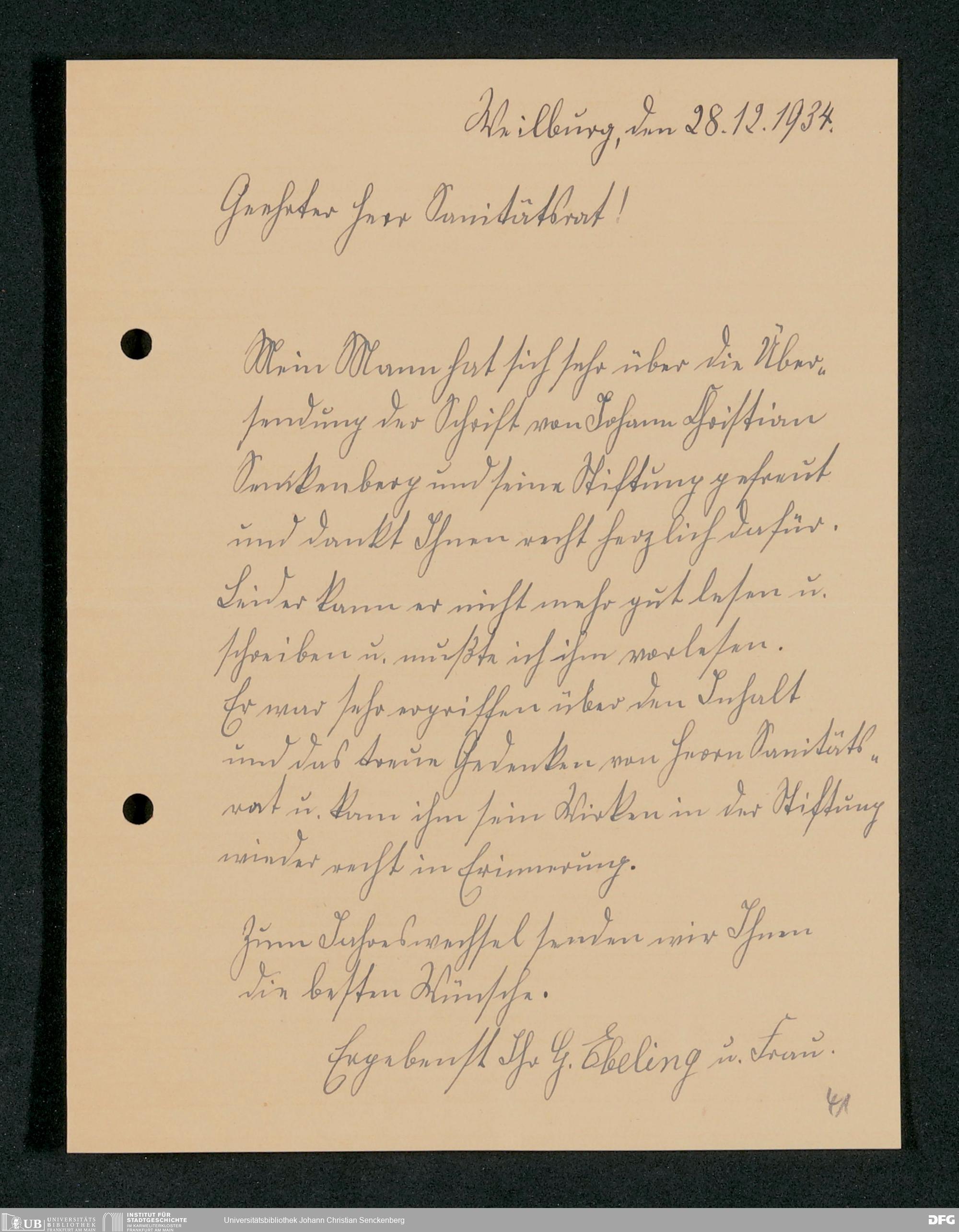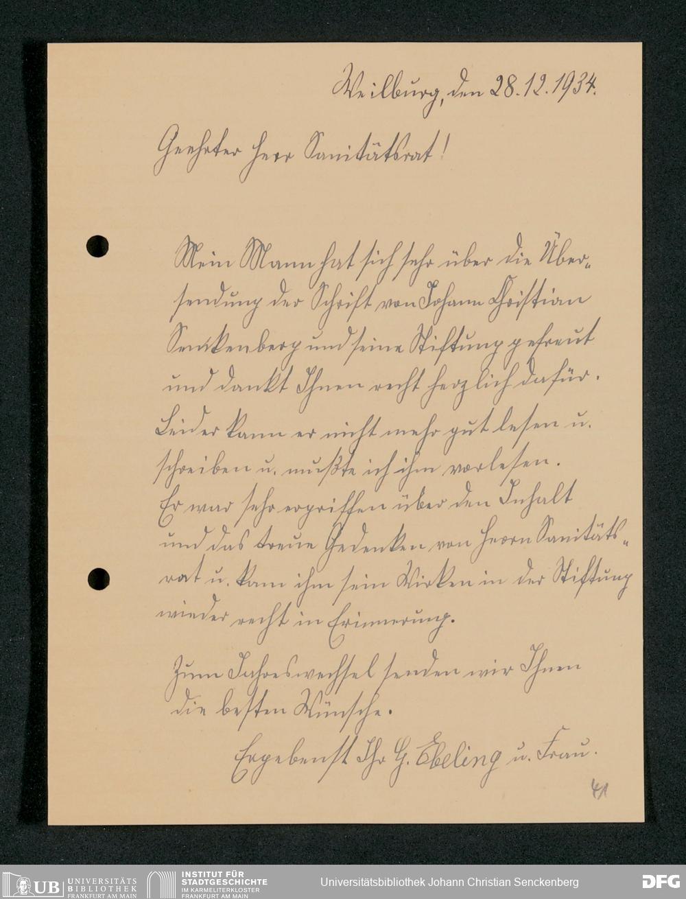 V48 Dr. Senckenbergische Stiftung, 790 - Dankschreiben an die Administration für erhaltene Freiexemplare der von August de Bary verfassten Biografie Johann Christian Senckenbergs