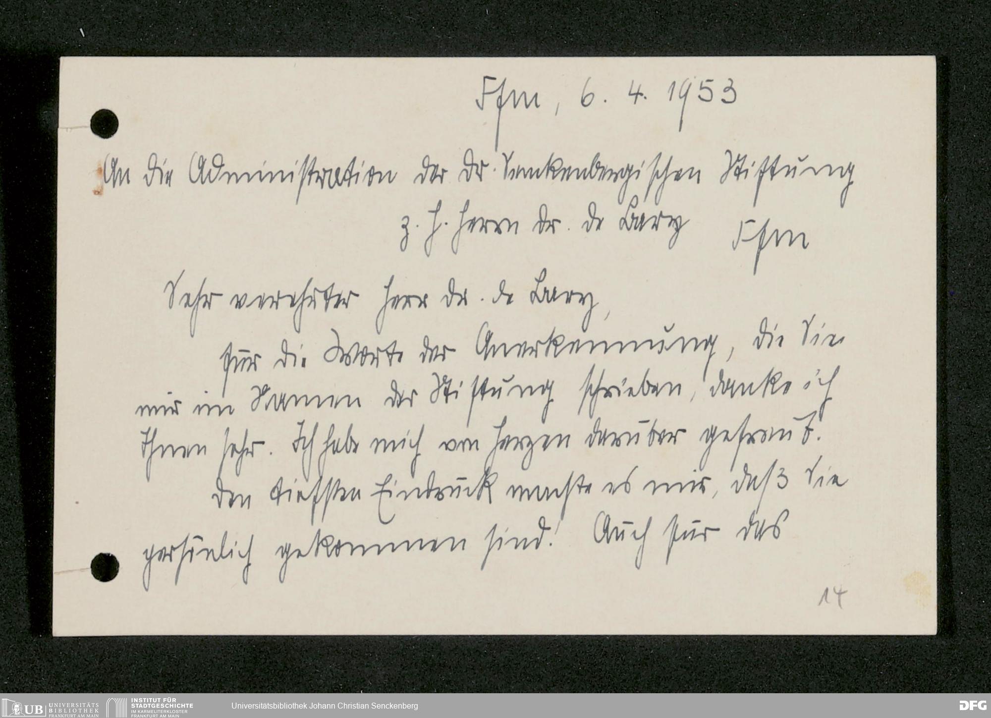 V48 Dr. Senckenbergische Stiftung, 793 - Bibliothek in der Nachkriegszeit