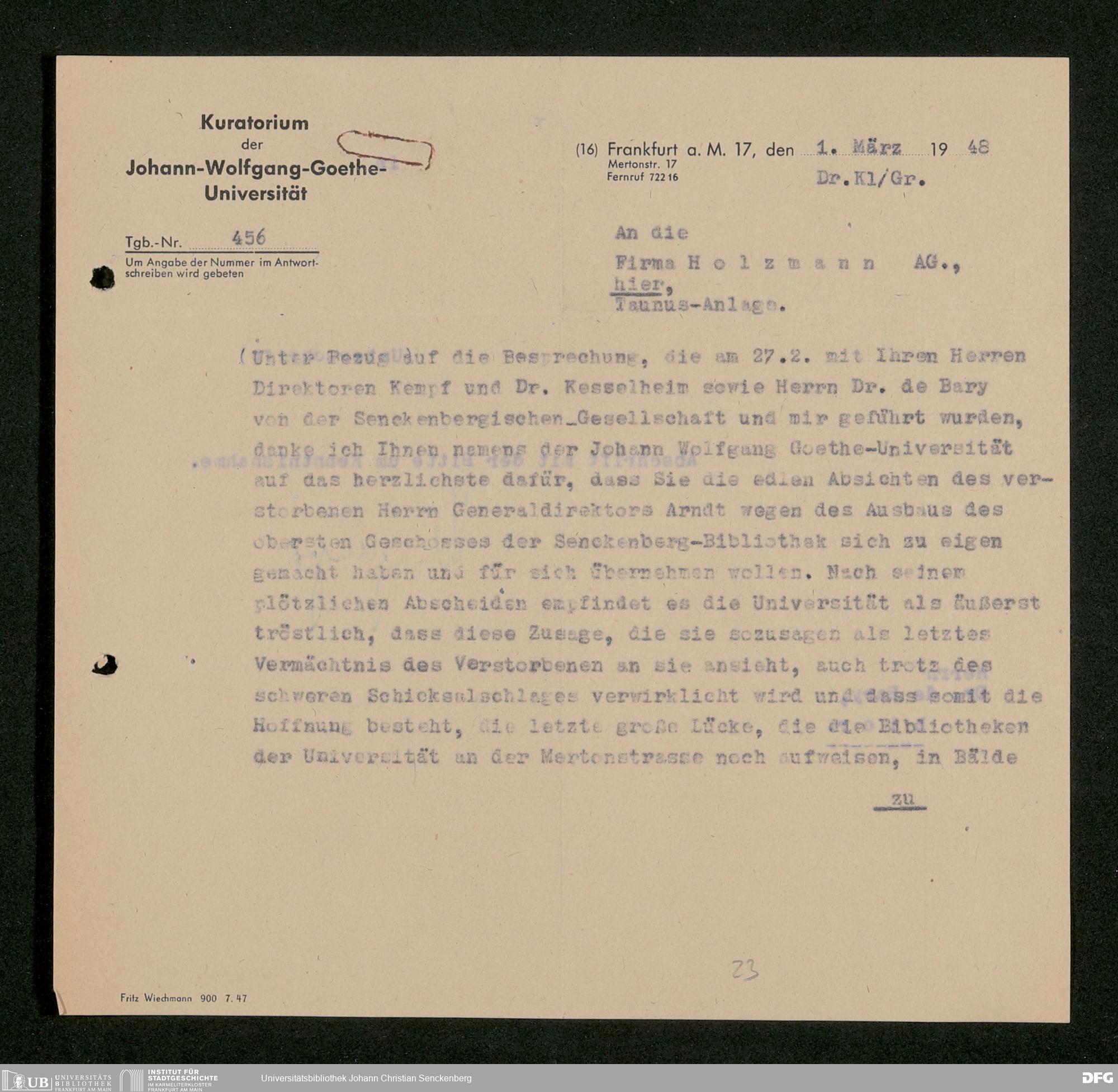 V48 Dr. Senckenbergische Stiftung, 793 - Bibliothek in der Nachkriegszeit