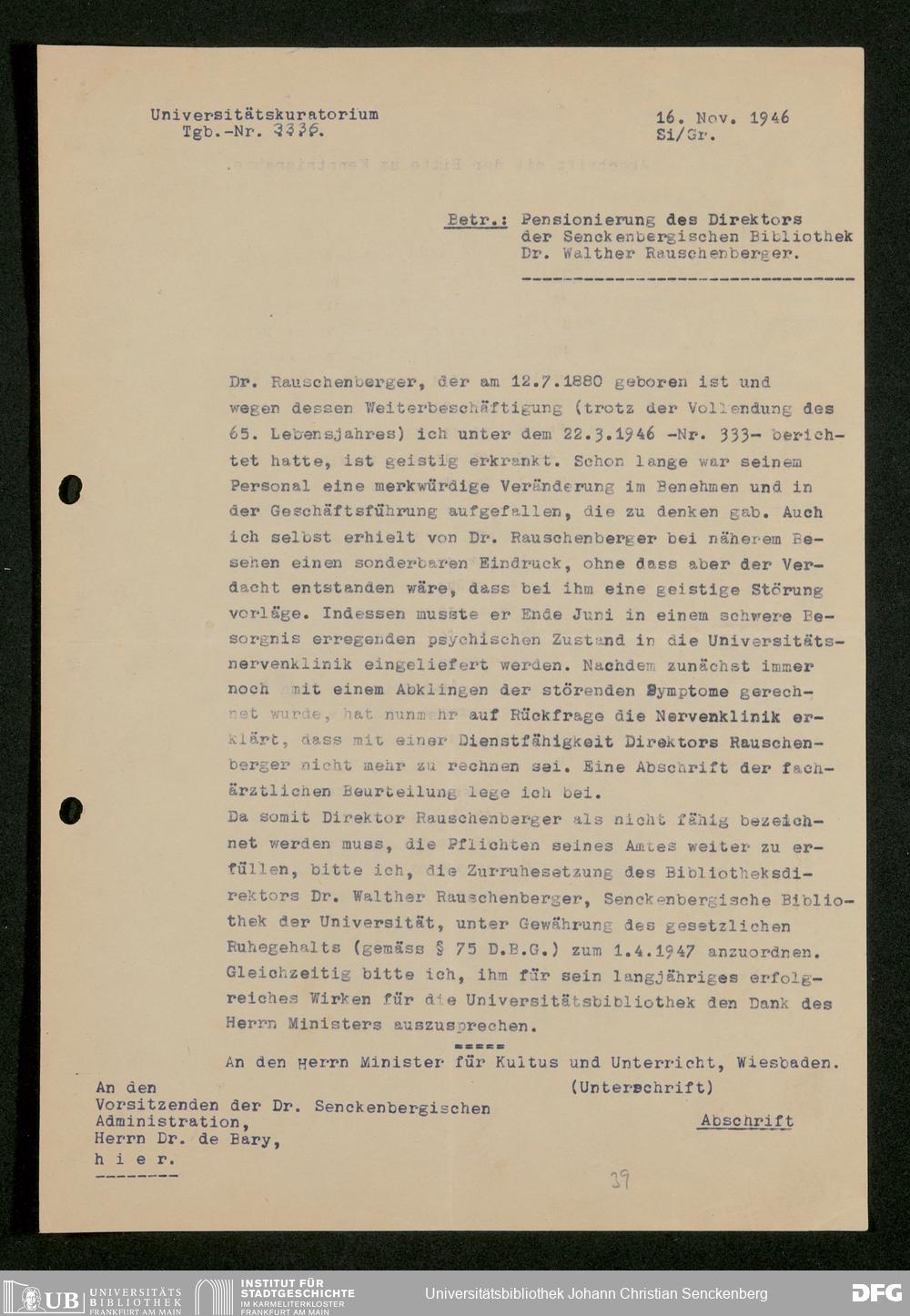 V48 Dr. Senckenbergische Stiftung, 793 - Bibliothek in der Nachkriegszeit