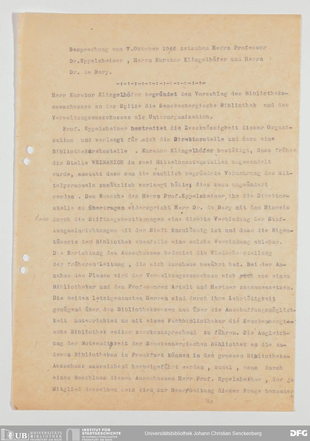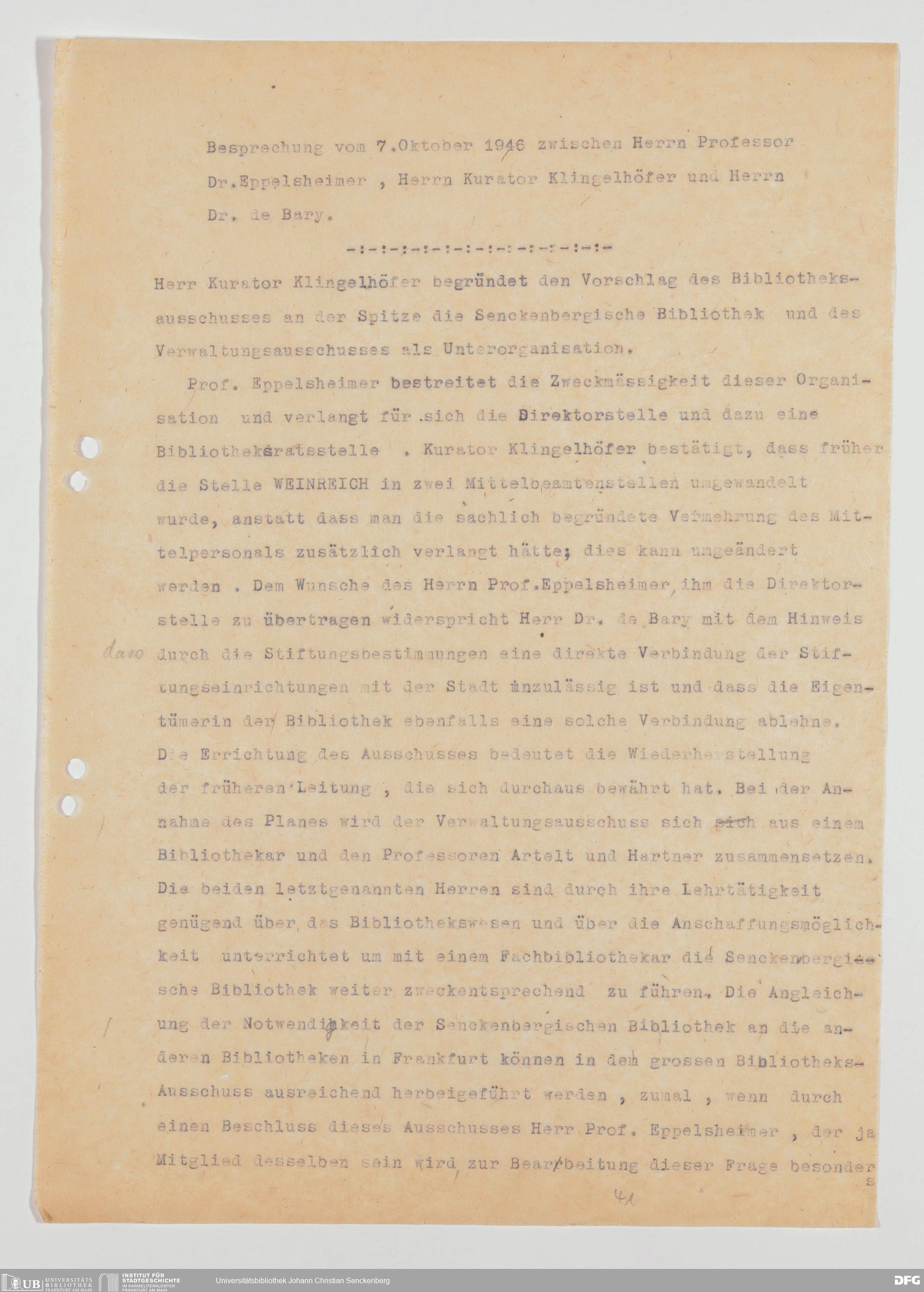 V48 Dr. Senckenbergische Stiftung, 793 - Bibliothek in der Nachkriegszeit