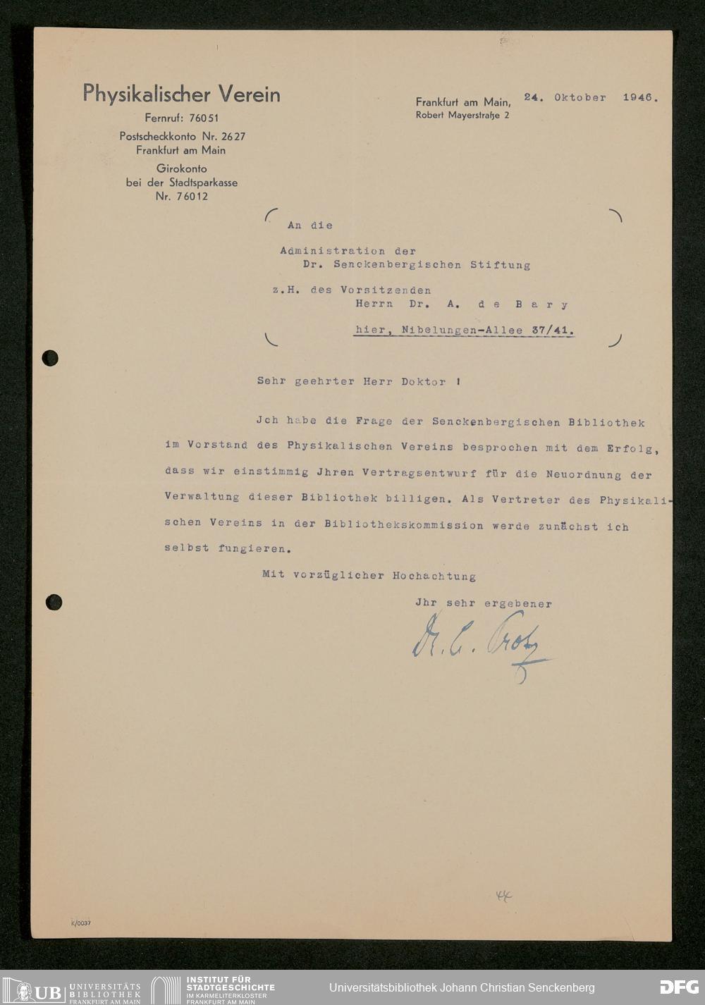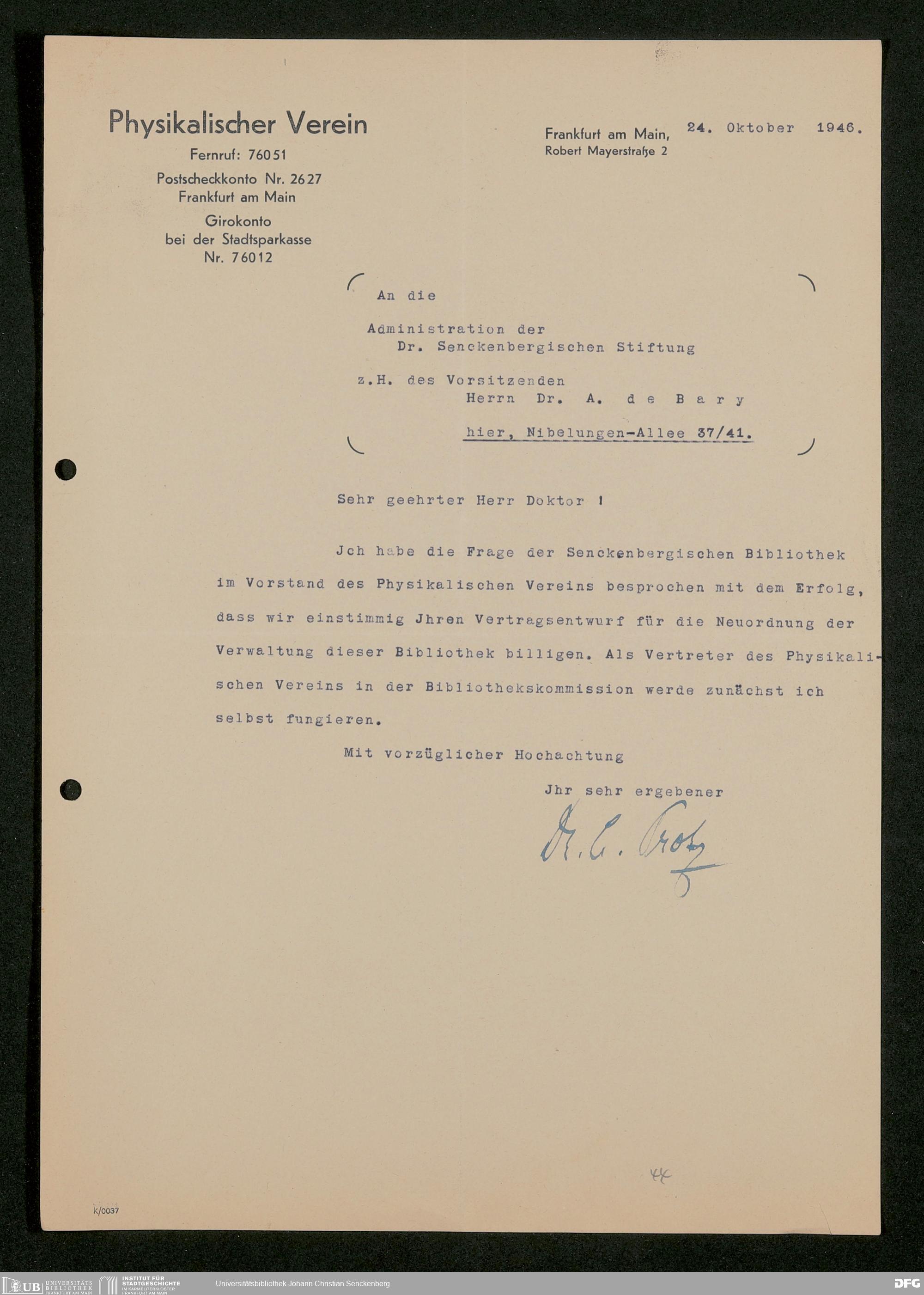 V48 Dr. Senckenbergische Stiftung, 793 - Bibliothek in der Nachkriegszeit