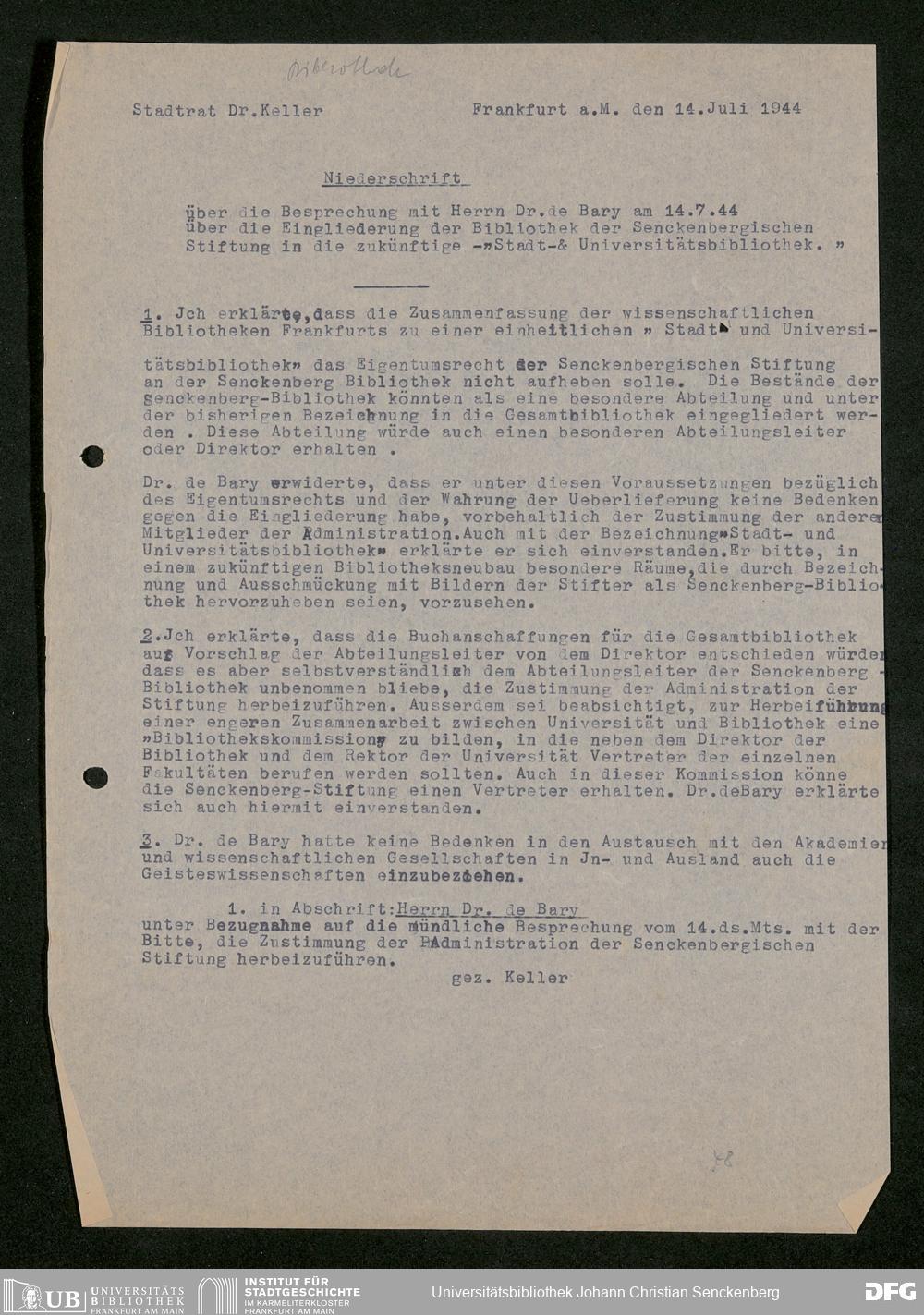 V48 Dr. Senckenbergische Stiftung, 793 - Bibliothek in der Nachkriegszeit