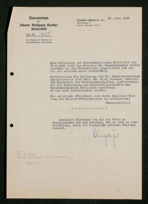 V48 Dr. Senckenbergische Stiftung, 793 - Bibliothek in der Nachkriegszeit