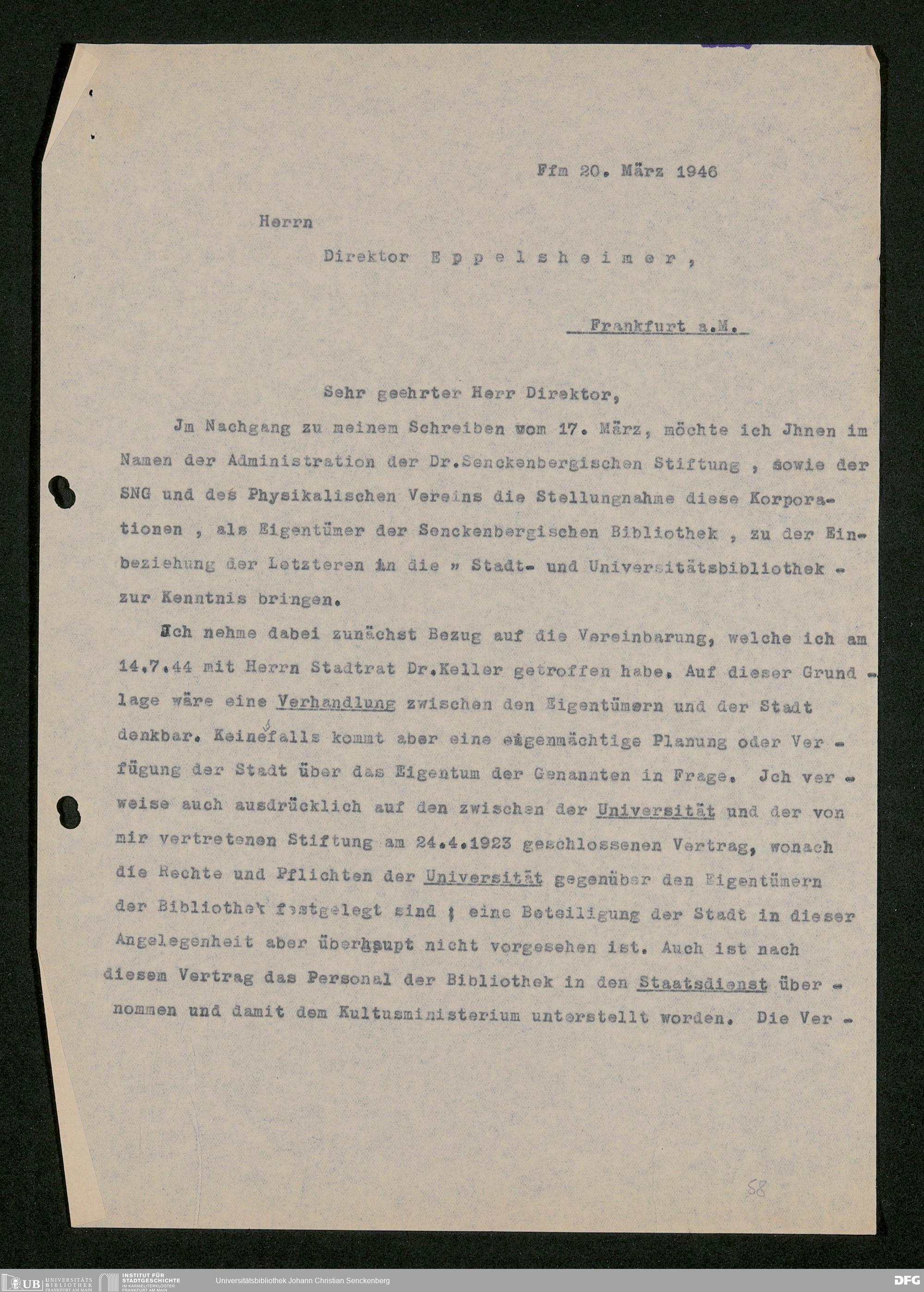 V48 Dr. Senckenbergische Stiftung, 793 - Bibliothek in der Nachkriegszeit